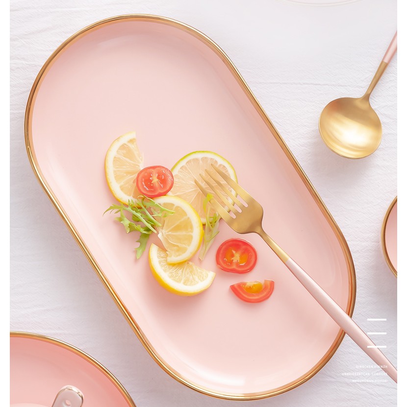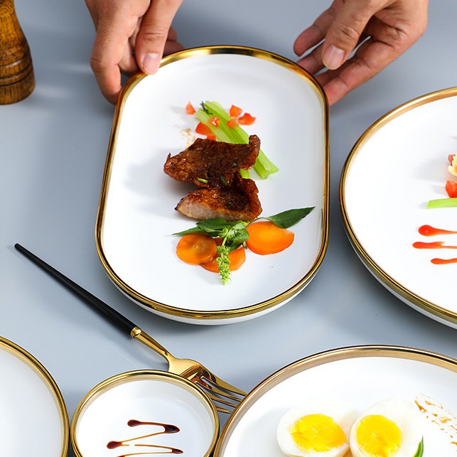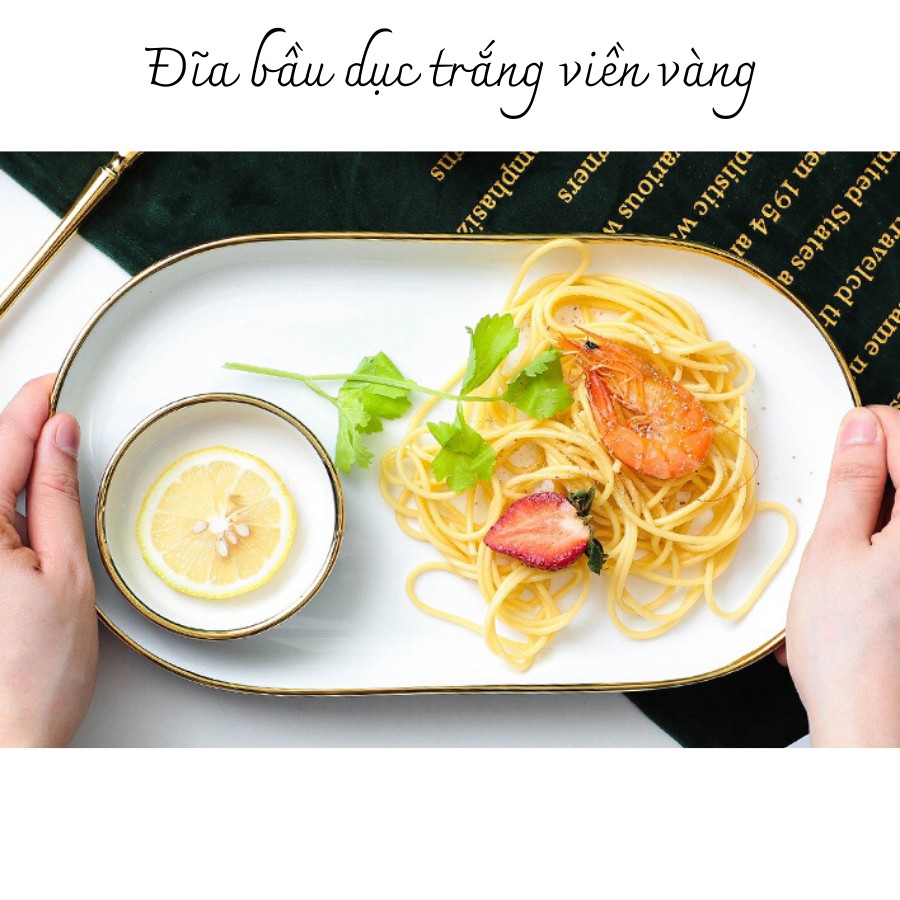 + Đĩa bầu dục viền vàng giúp món ăn trở nên đẹp mắt hơn