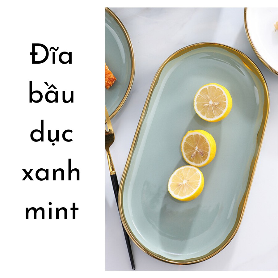 Giới thiệu Đĩa sứ hình bầu dục viền vàng cao cấp size 11.5