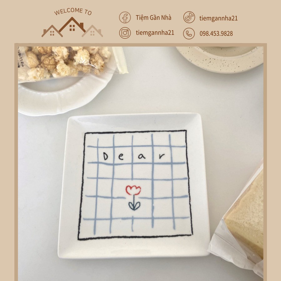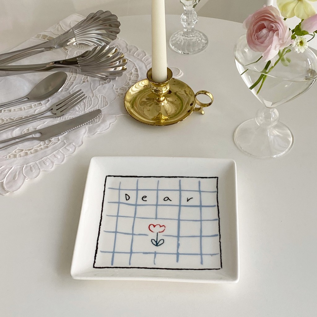Nhà cửa & Đời sống > Bộ đồ bàn ăn > Dĩa || Đĩa sứ hoa hình vuông phong cách Hàn QuốcCòn hàng