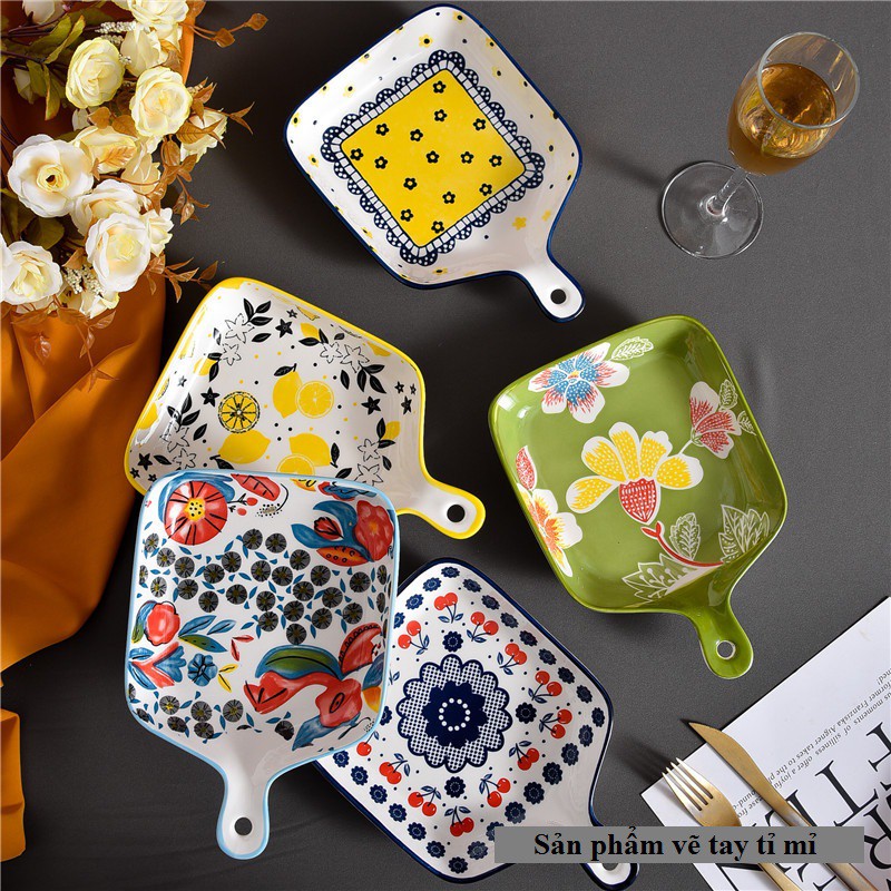 Nhà cửa & Đời sống > Bộ đồ bàn ăn > Tô || Đĩa Sứ Họa Tiết Đựng Hoa Quả Decor Trang Trí Bàn Ăn Có Tay CầmCòn hàng
