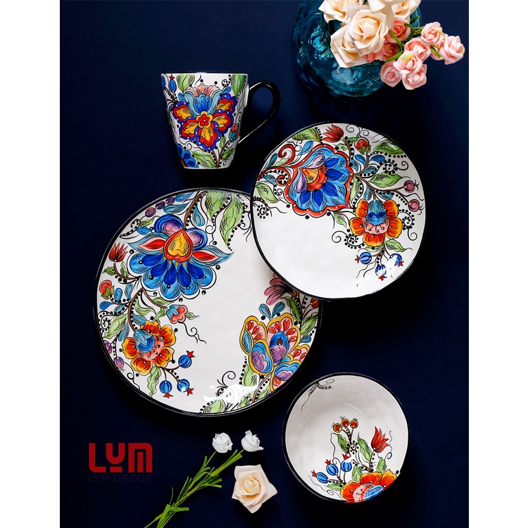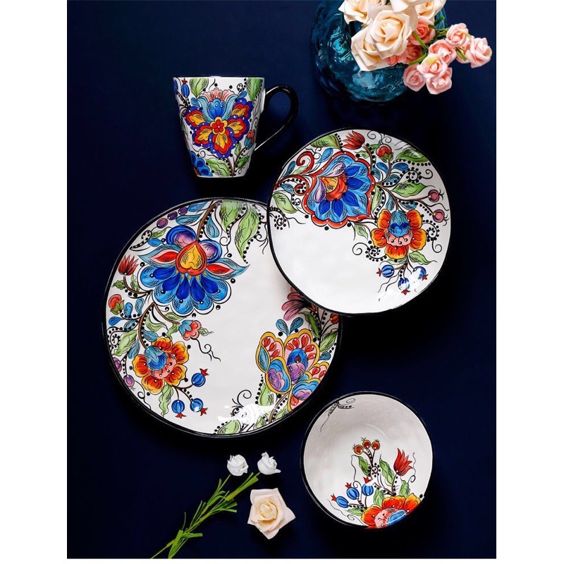 ☘Bộ bát đĩa vẽ tay thủ công với họa tiết siêu đẹp đến từ nghệ nhân làng gốm Giang Tây Trung Quốc. Sản phẩm được xuất các nước Châu Âu