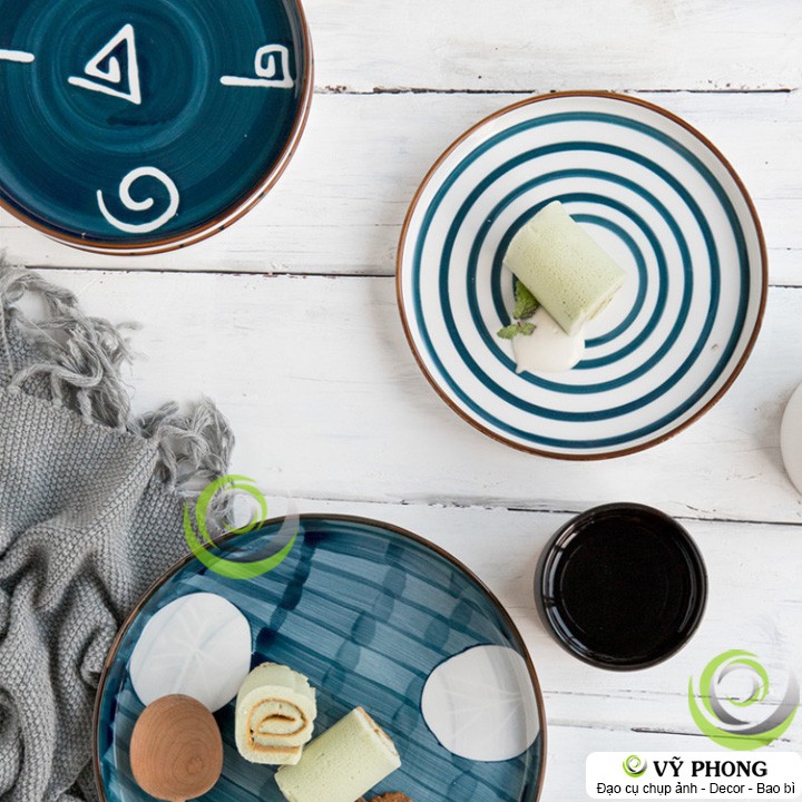 DĨA SỨ HOA VĂN PHONG CÁCH NHẬT BẢN CỔ TRANG TRÍ BẾP CHỤP HÌNH ĐẠO CỤ CHỤP ẢNH SẢN PHẨM INS DCB-22