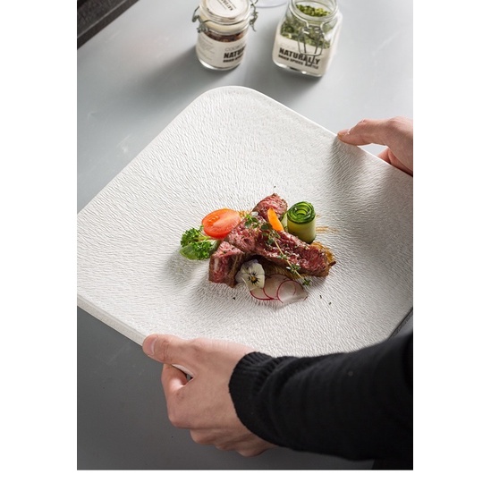 Đĩa Sứ Nhà hàng Cao cấp , Đĩa sứ Vuông phẳng sarang 2 màu trắng đen