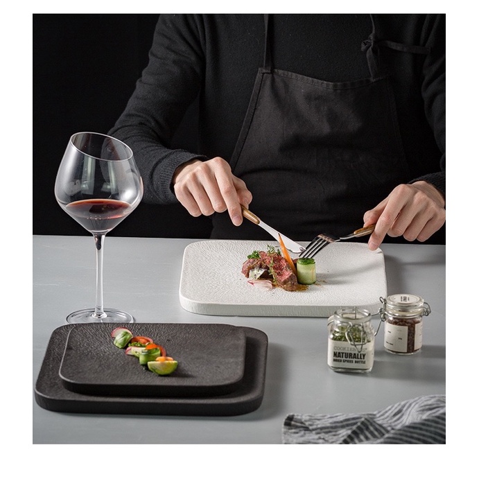Giới thiệu Đĩa Sứ Nhà hàng Cao cấp , Đĩa sứ Vuông phẳng sarang 2 màu trắng đen
