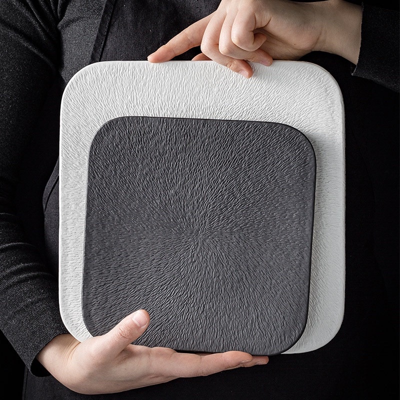 ĐĨA SỨ VUÔNG 2 MÀU ĐEN/TRẮNG - ĐĨA NHÀ HÀNGCHẤT LIỆU