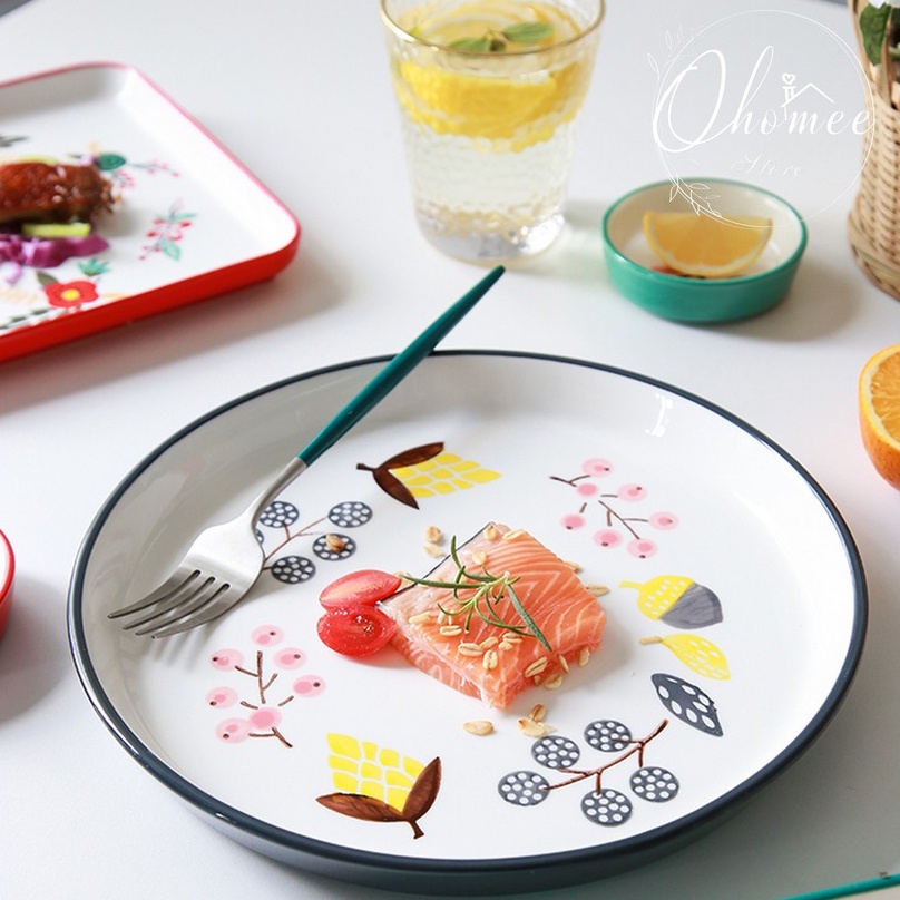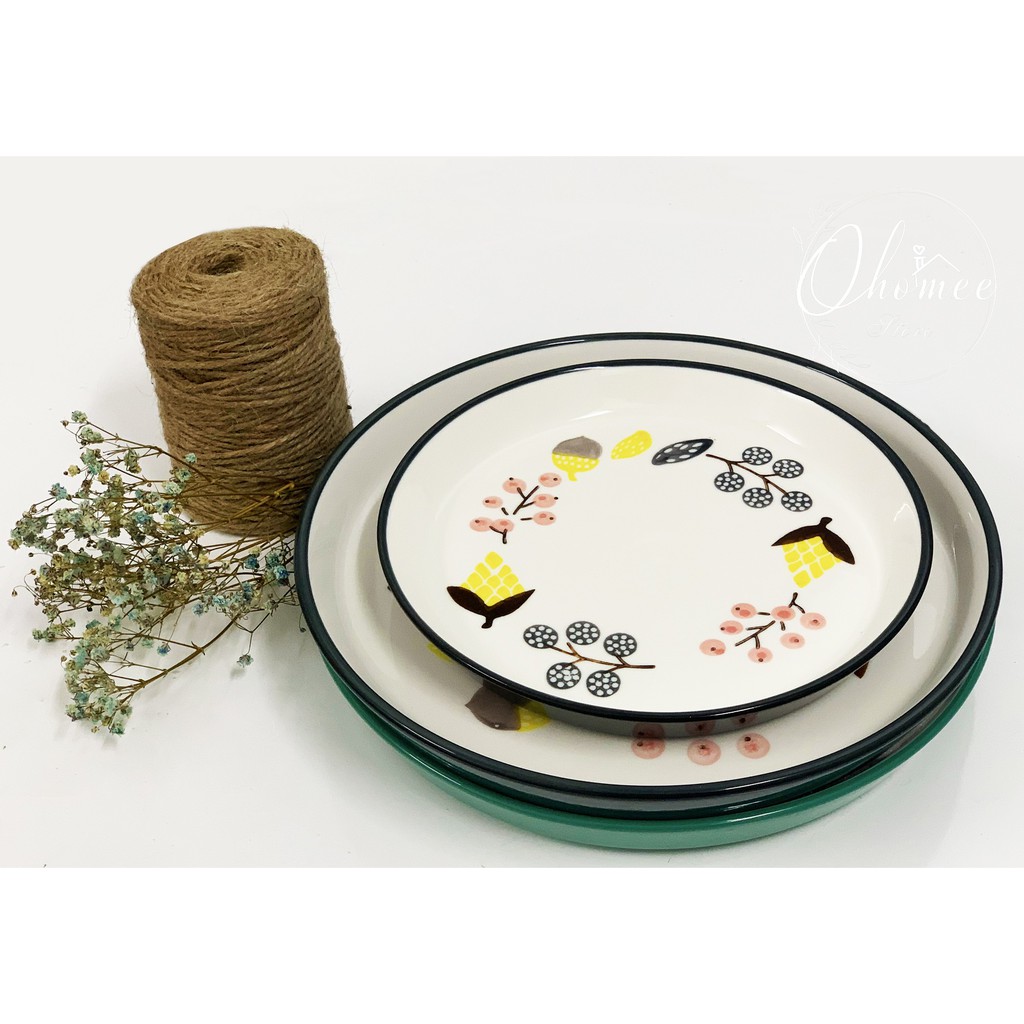 Nhà cửa & Đời sống > Bộ đồ bàn ăn > Dĩa || Đĩa sứ Nhật Bản tráng men họa tiết vòng hoaCòn hàng