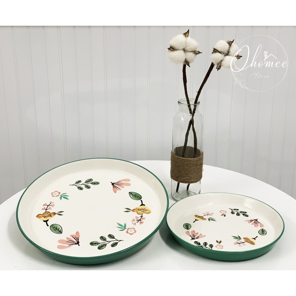 🍀Mô tả sản phẩm:Bộ 2 đĩa với họa tiết vòng hoa mang phong cách Nhật Bản