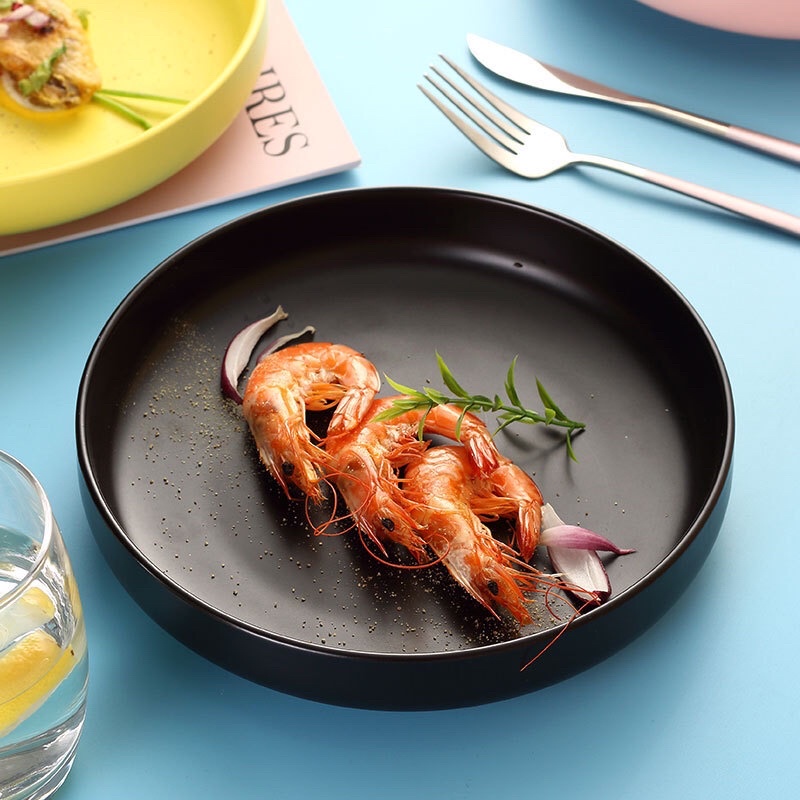 Đĩa tròn viền thành cao rất thích hợp với các món ăn kèm sốt, mỳ, salat, bít tết