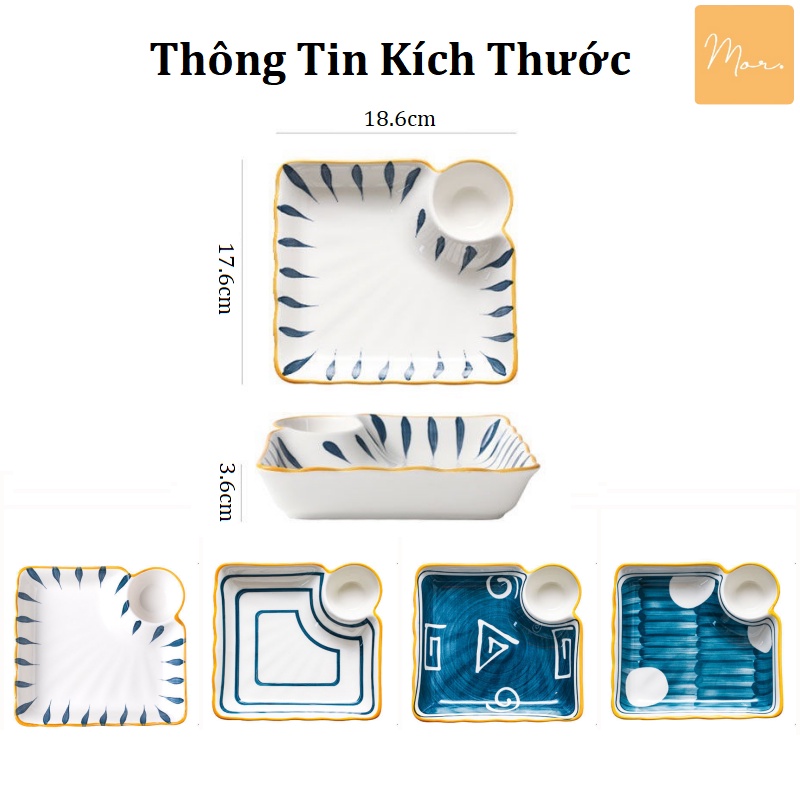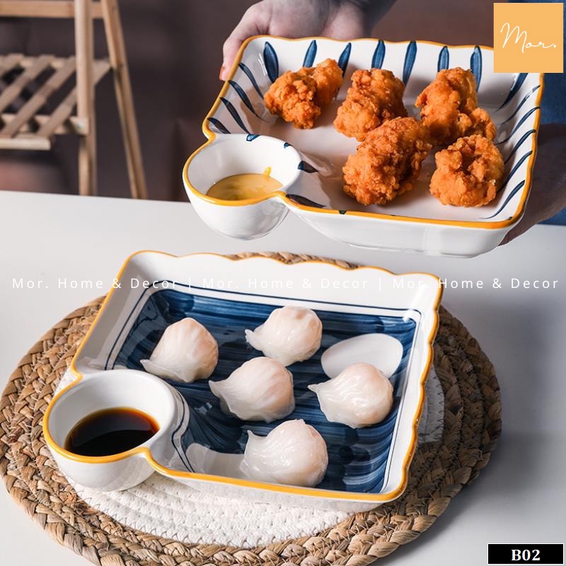 Đĩa sứ chia ngăn rất tiện dụng khi bạn để đồ chấm hoặc đồ ăn kèm.