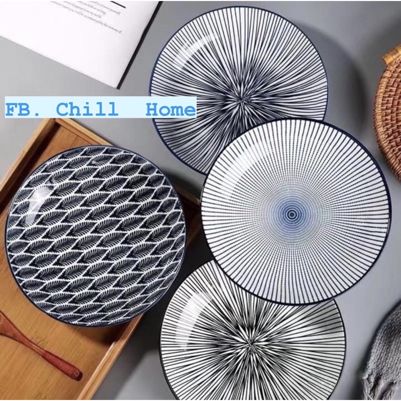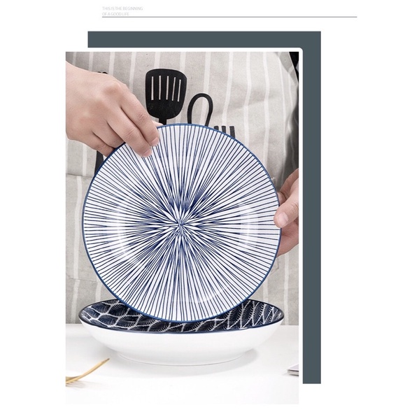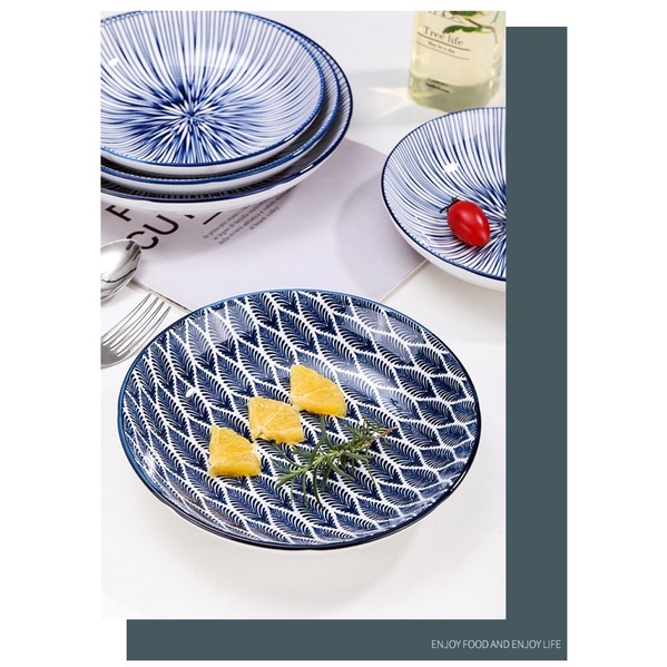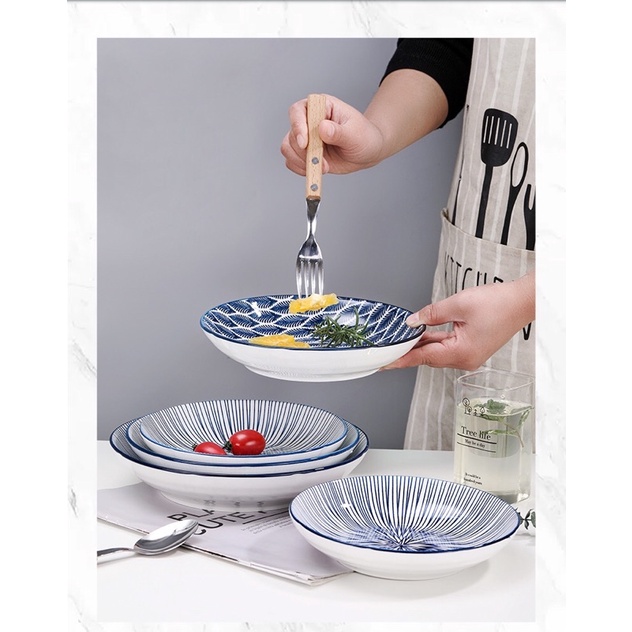 Giới thiệu Đĩa sứ phong cách Nhật Bản,đĩa sứ tròn họa tiết size 20.5cm dùng đựng thức ăn và decor bàn ăn