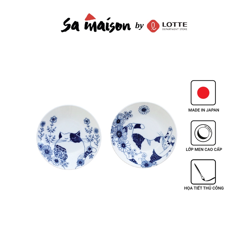 Đĩa sứ sâu lòng Kiyohara Nhật bản D23cm, Họa tiết Ronron and Mew