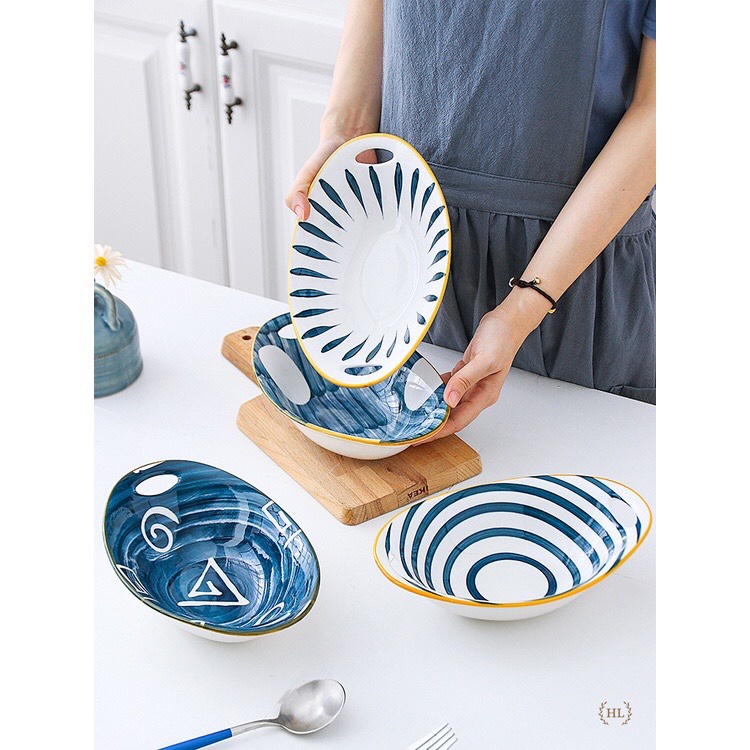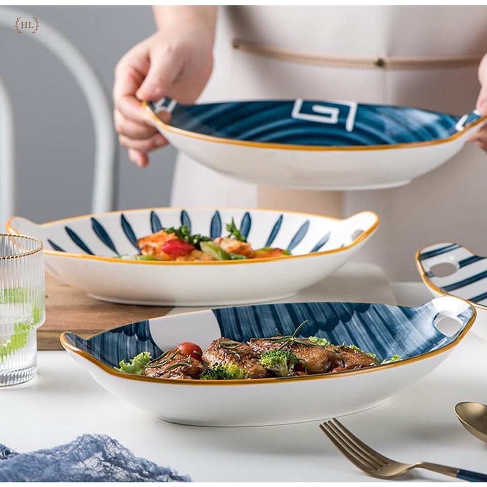 Nhà cửa & Đời sống > Bộ đồ bàn ăn > Tô || Đĩa sứ Thuyền Nhật Bản, Đĩa sứ phong cách Retro 2022 kiểu dáng bầu dục sâu lòng-HLCòn hàng