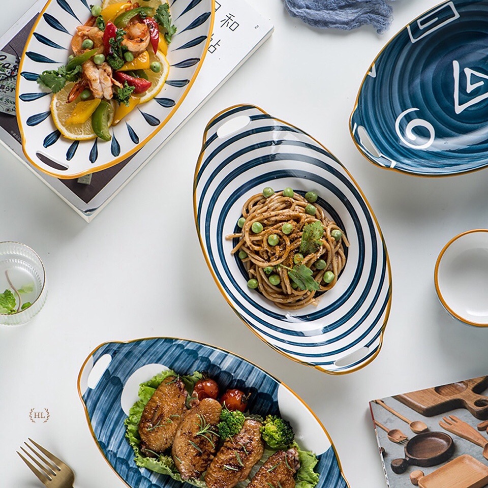 Giới thiệu Đĩa sứ Thuyền Nhật Bản, Đĩa sứ phong cách Retro 2022 kiểu dáng bầu dục sâu lòng-HL