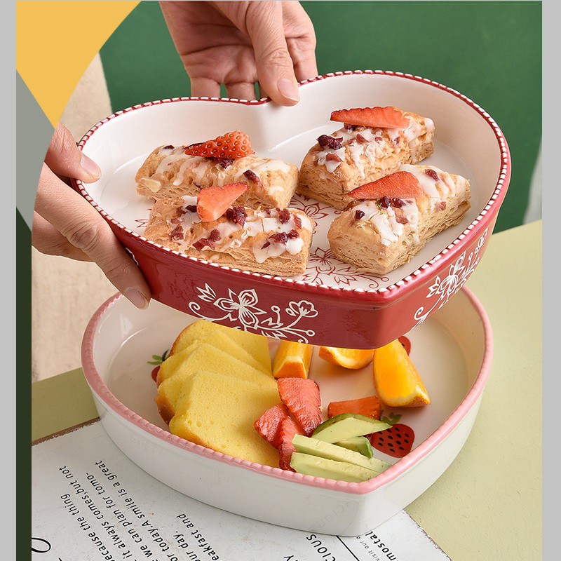 Đĩa sứ trái tim decor bàn ăn, đĩa handmade