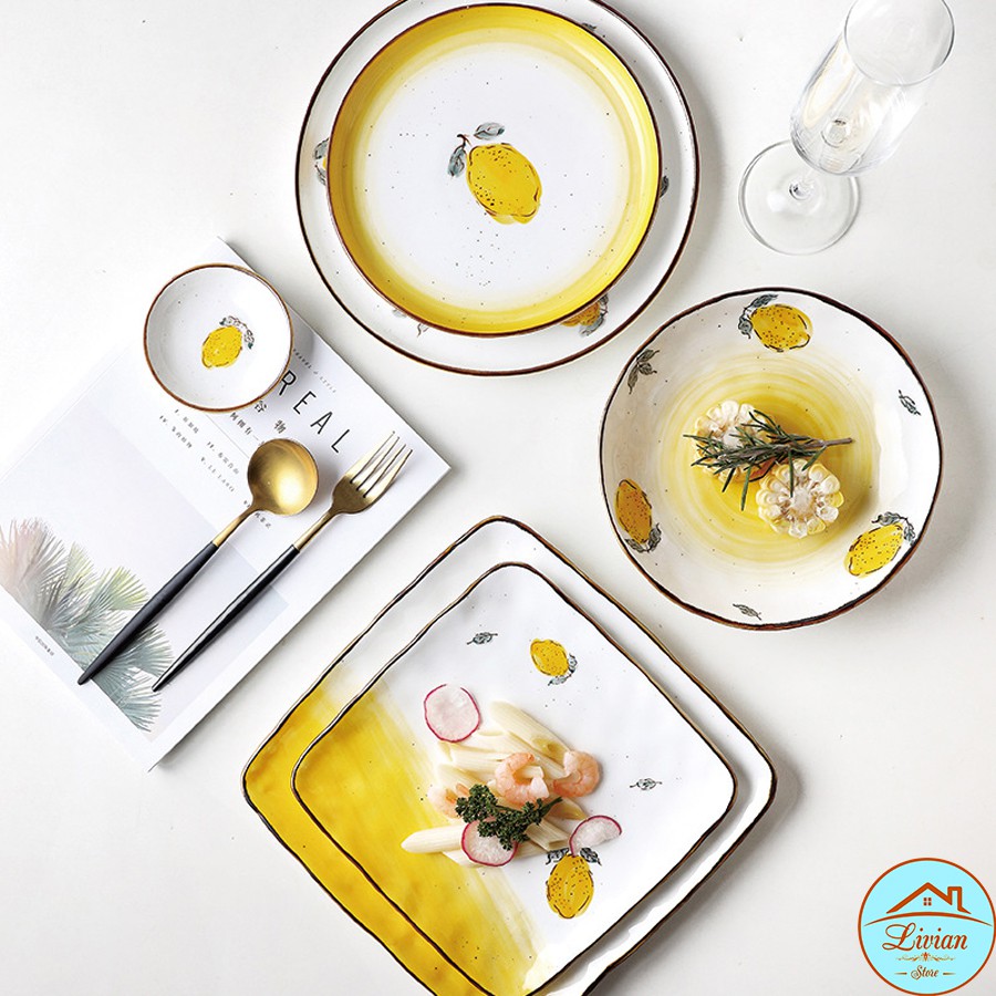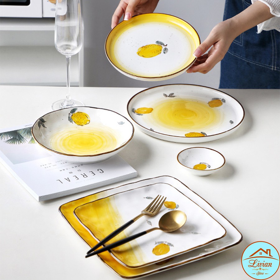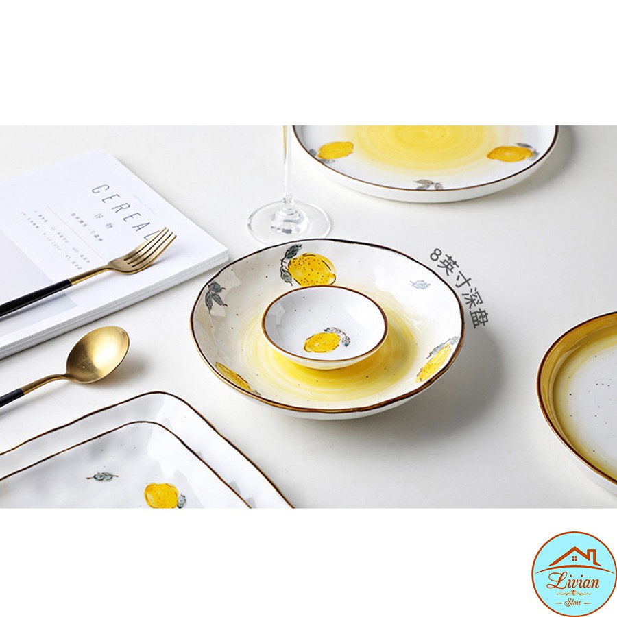 Nhà cửa & Đời sống > Bộ đồ bàn ăn > Dĩa || Đĩa sứ trắng, đĩa sứ trang trí họa tiết chanh vàng tươi tắn nhiều kích thướcCòn hàng