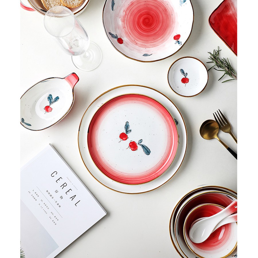Nhà cửa & Đời sống > Bộ đồ bàn ăn > Dĩa || Đĩa sứ trang trí bàn ăn họa tiết củ cải đỏ nhiều kích thước phù hợp bữa ăn gia đình [ HÀNG SẴN]Còn hàng