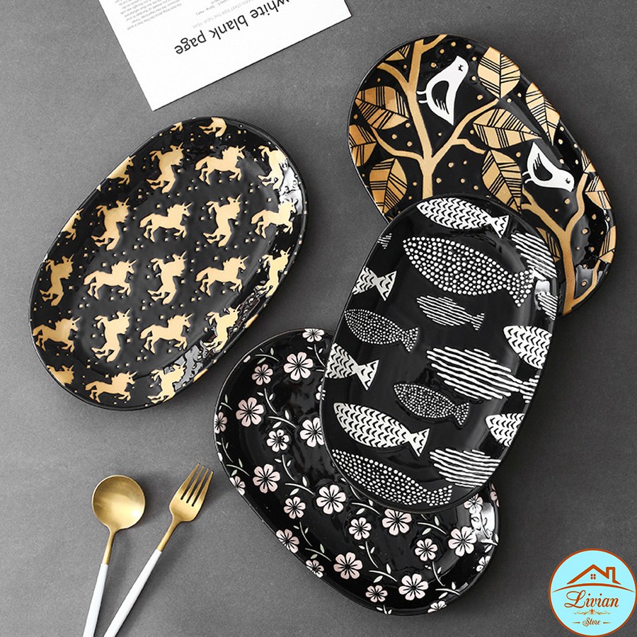 Nhà cửa & Đời sống > Bộ đồ bàn ăn > Dĩa || Đĩa sứ trang trí, đĩa sứ cao cấp tráng men 2 lớp dày dặn sang trọng phong cách Bắc ÂuCòn hàng