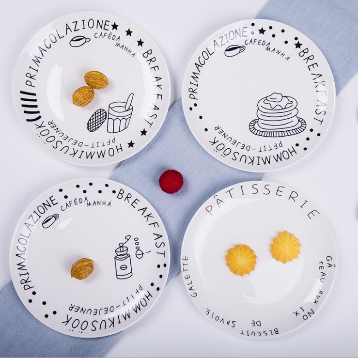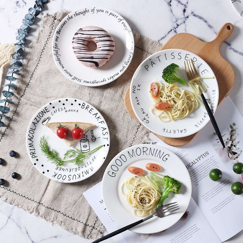 Nhà cửa & Đời sống > Bộ đồ bàn ăn > Dĩa || Đĩa sứ trang trí họa tiết trắng đen hình bánh ngọtCòn hàng