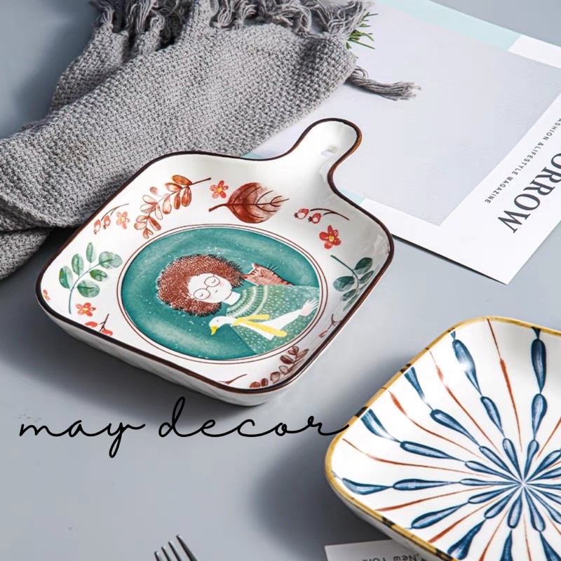 Nhà cửa & Đời sống > Bộ đồ bàn ăn > Dĩa || Đĩa sứ trang trí thiết kế Nhật Bản có tay cầm -may.decor-Còn hàng