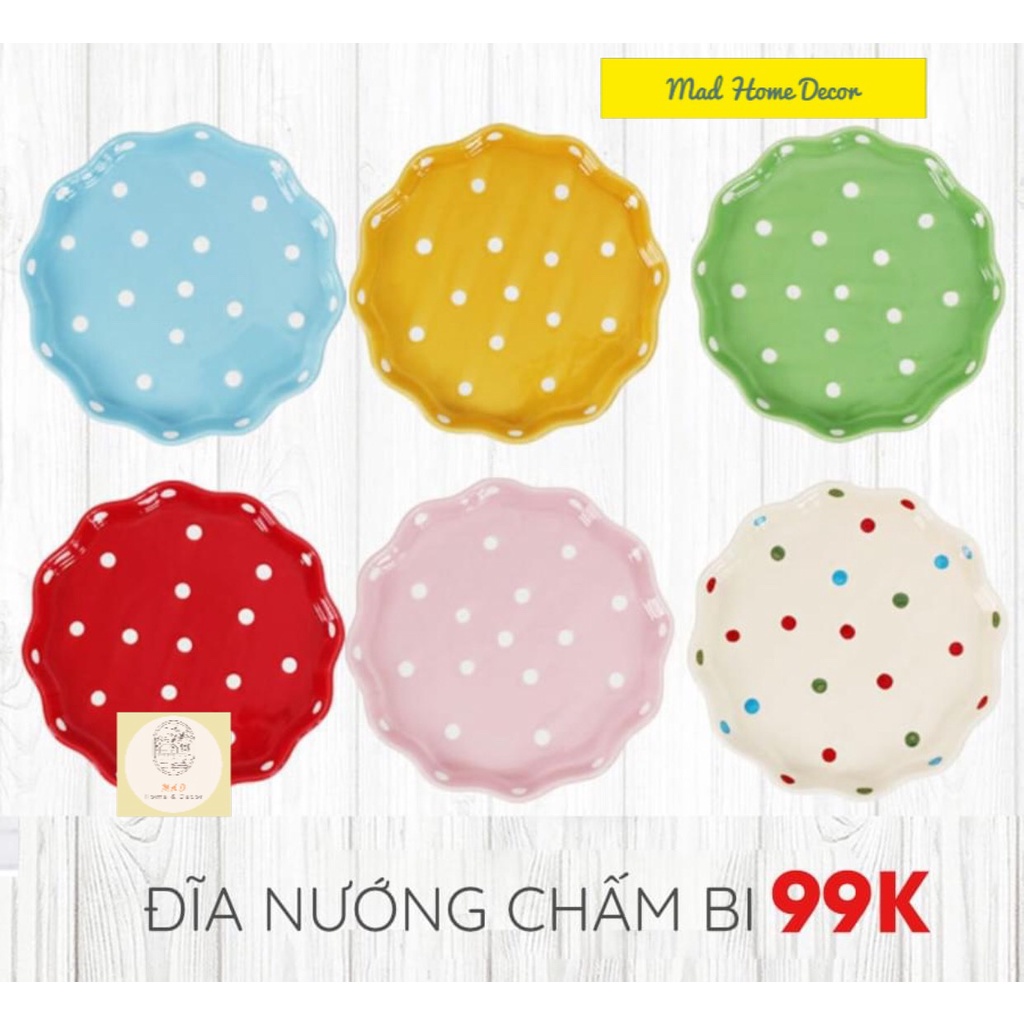 Nhà cửa & Đời sống > Bộ đồ bàn ăn > Dĩa || Đĩa sứ tròn, khay nướng đựng đồ ăn hình tròn - Họa tiết chấm bi màu sắc sặc sỡ - Gốm sứ cao cấp an toàn sức khỏeCòn hàng