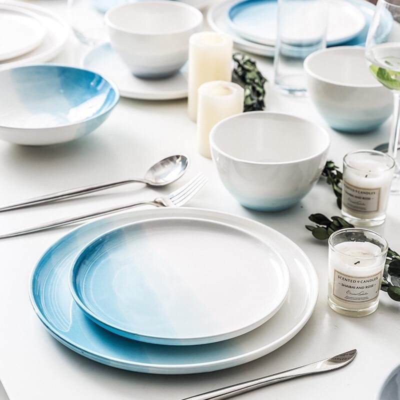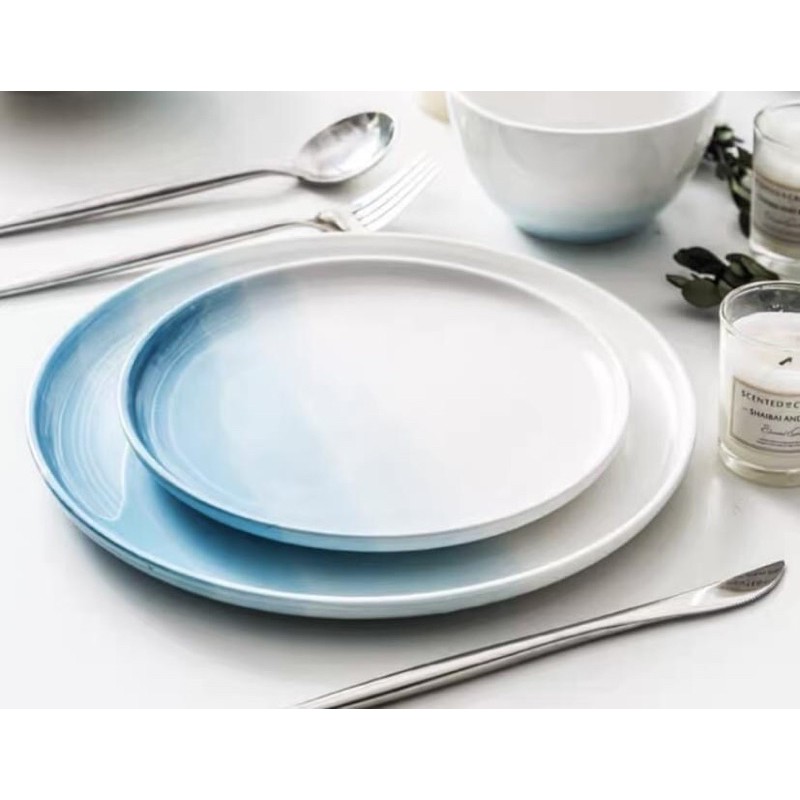 Nhà cửa & Đời sống > Bộ đồ bàn ăn > Dĩa || Đĩa sứ tròn phong cách Bắc Âu, đĩa sứ cao cấp xanh OMBRE decor món ăn đẹpCòn hàng