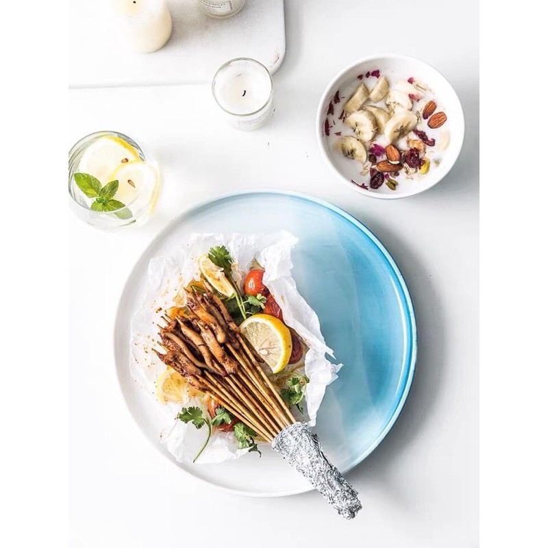 Giới thiệu Đĩa sứ tròn phong cách Bắc Âu, đĩa sứ cao cấp xanh OMBRE decor món ăn đẹp