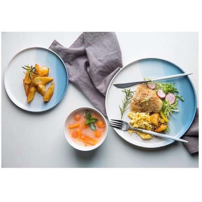 Đĩa sứ tròn phong cách Bắc Âu, đĩa sứ cao cấp xanh OMBRE decor món ăn đẹp