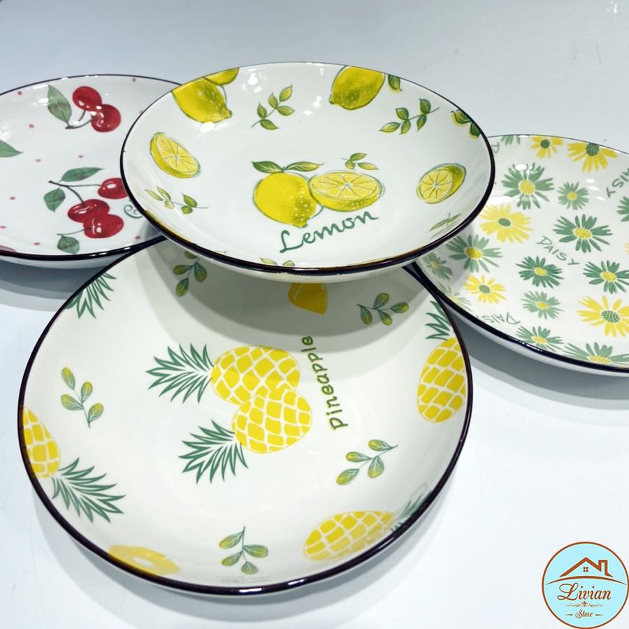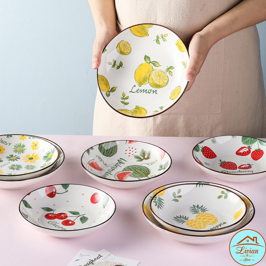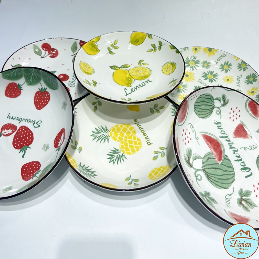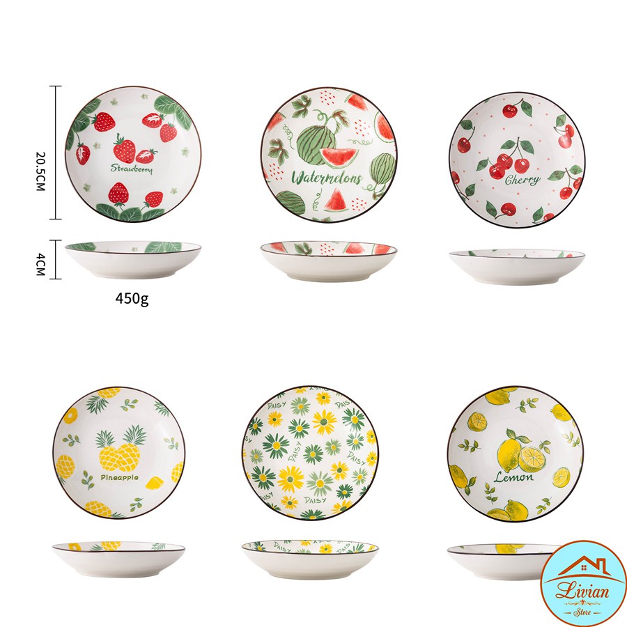 Đĩa sứ tròn sâu lòng 20.5cm nhiều họa tiết hoa quả dễ thương