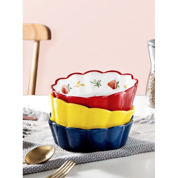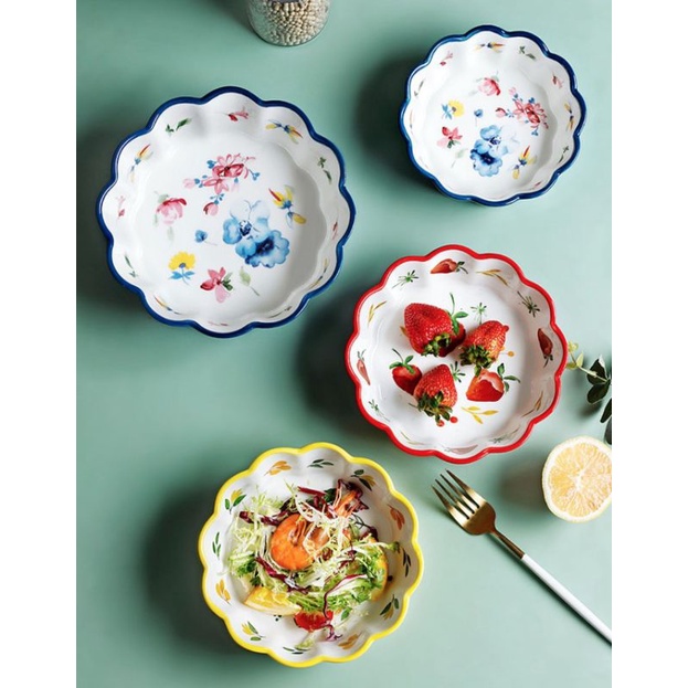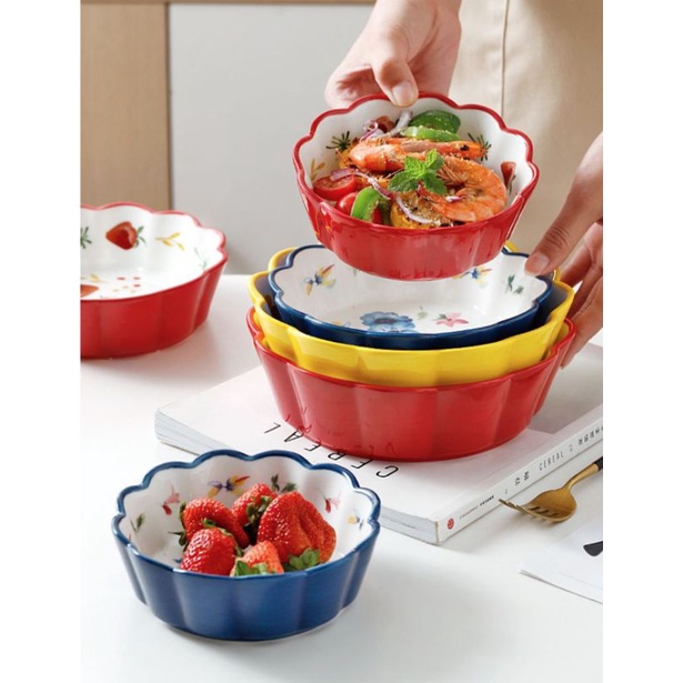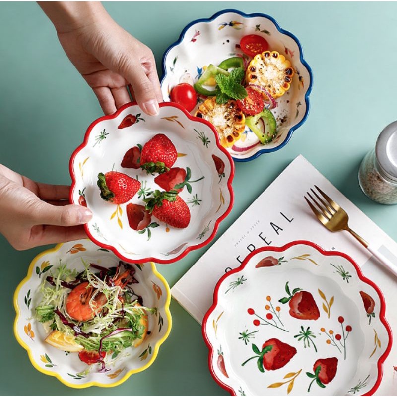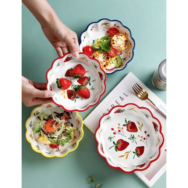 Nhà cửa & Đời sống > Bộ đồ bàn ăn > Tô || Đĩa sứ tròn tráng men vẽ tay phong cách Nhật decor phòng bếp gốm sứ bát đĩa trang trí lenhome bát nướng dâu đỏCòn hàng