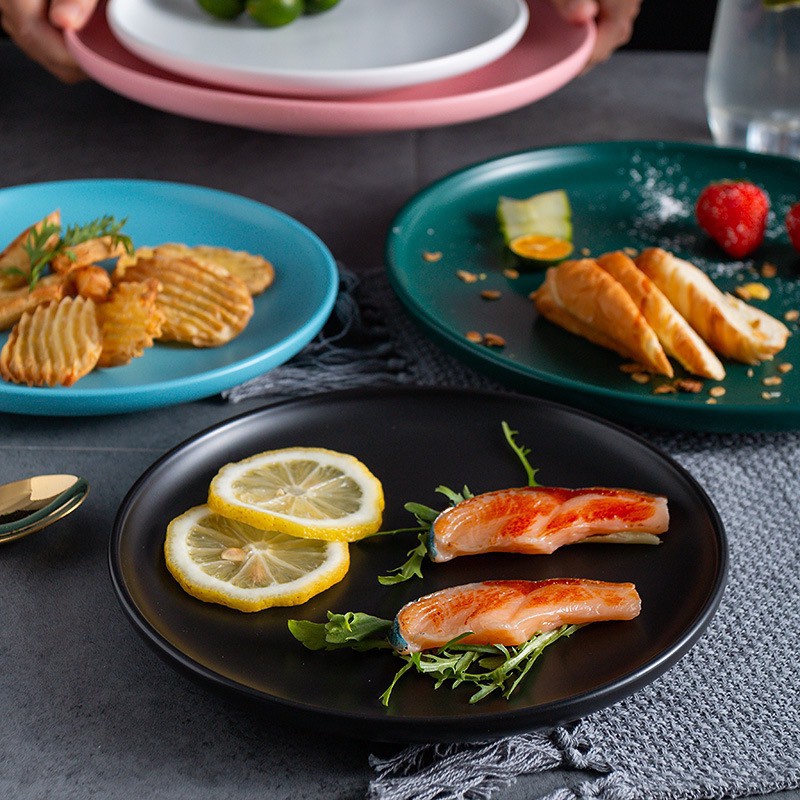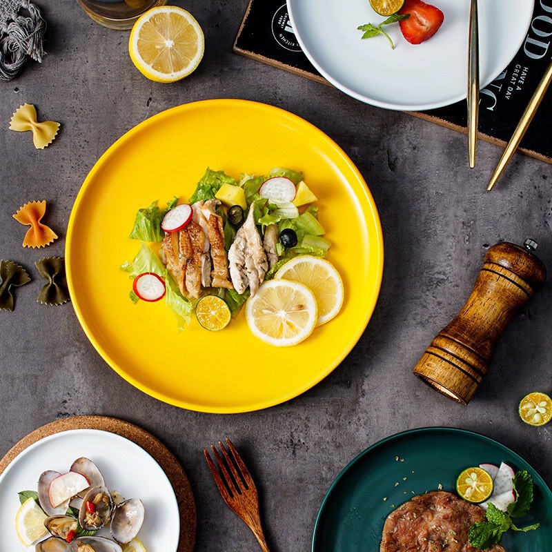 Đĩa sứ tròn trang trí món ăn