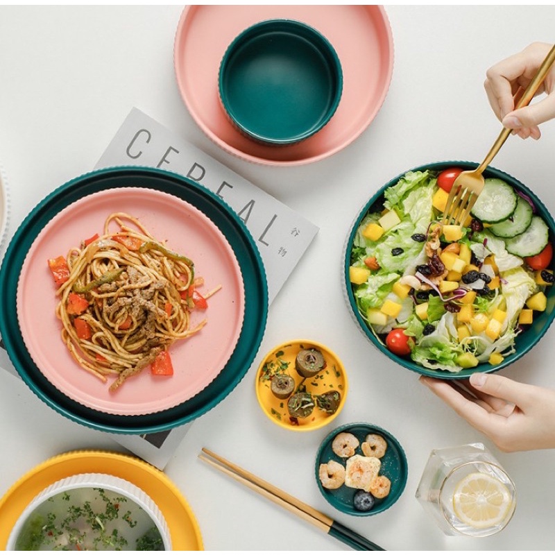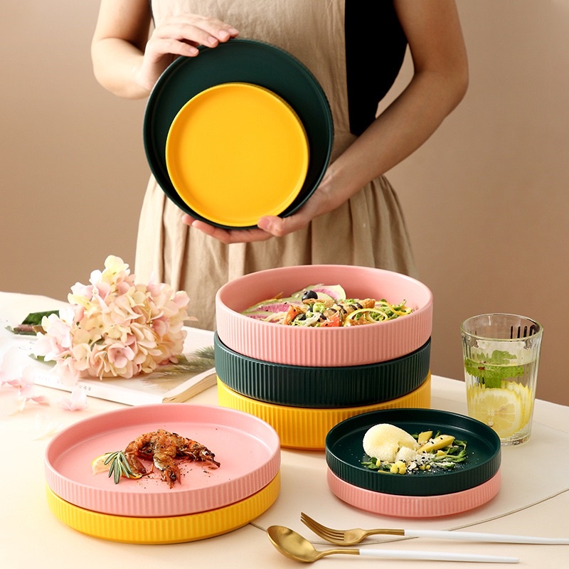 Nhà cửa & Đời sống > Bộ đồ bàn ăn > Dĩa || Đĩa sứ tròn Vân sọc sứ La Mã Cao cấp, Đĩa sứ tròn mặt phẳng một màu, Đĩa sâu lòngCòn hàng