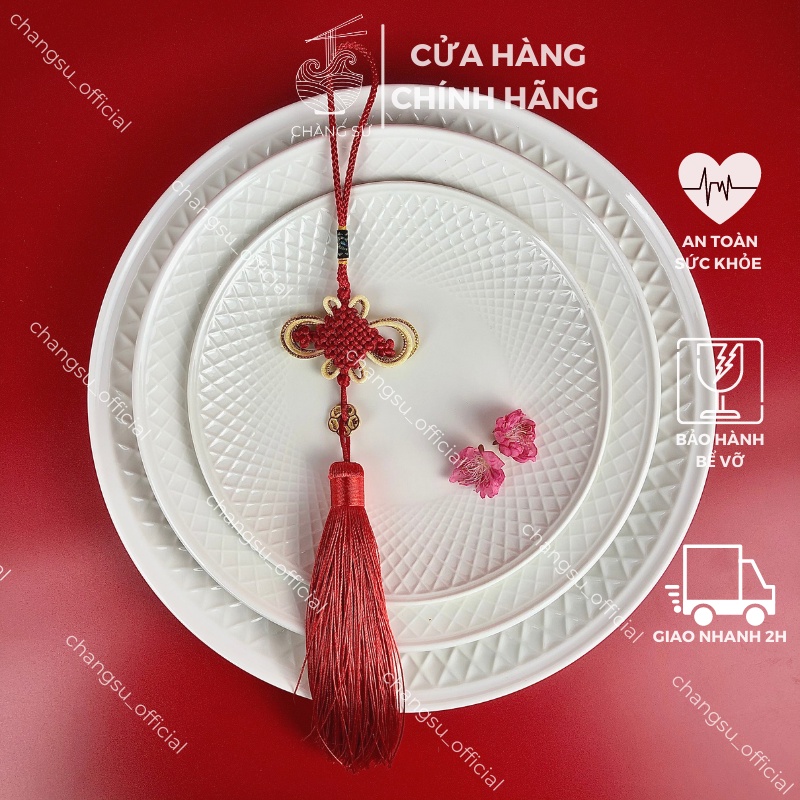 Nhà cửa & Đời sống > Bộ đồ bàn ăn > Dĩa || Đĩa sứ tròn viền nổi phong cách Bắc Âu - Dĩa trắng decor sứ Minh Châu họa tiết mosaic - Vỡ 1 đổi 1Còn hàng