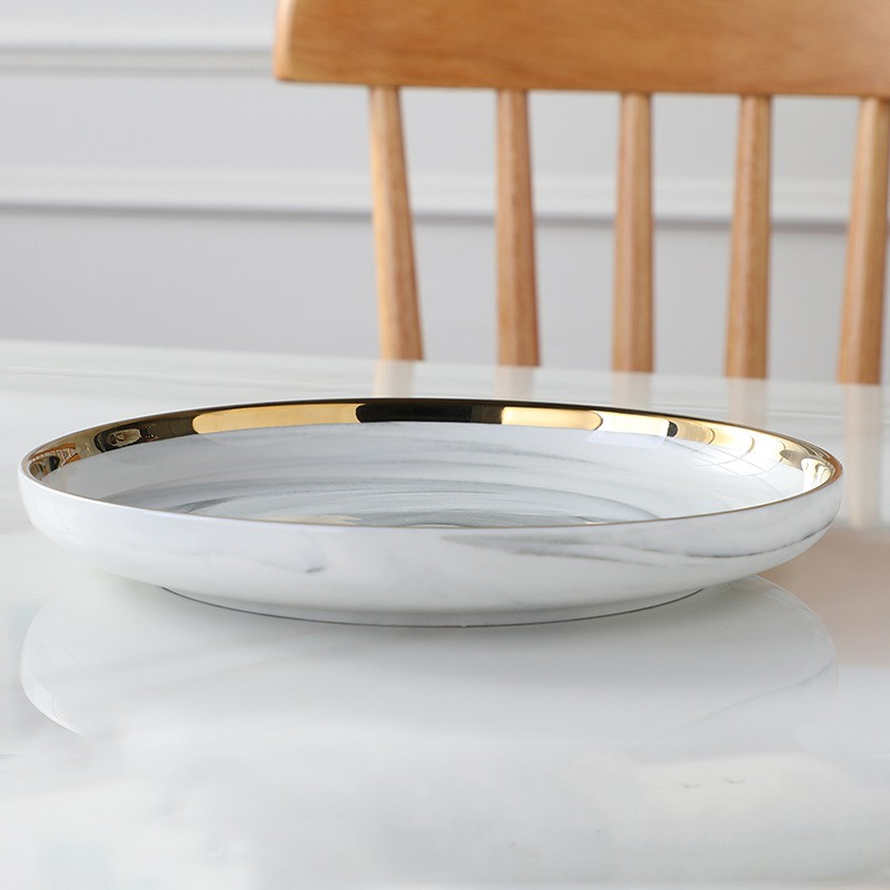 Đĩa Ăn Vân Đá Marble phong cách Bắc Âu đơn giản mà sang trọngChất liệu: sứ tráng men bóng loáng đẳng cấp.