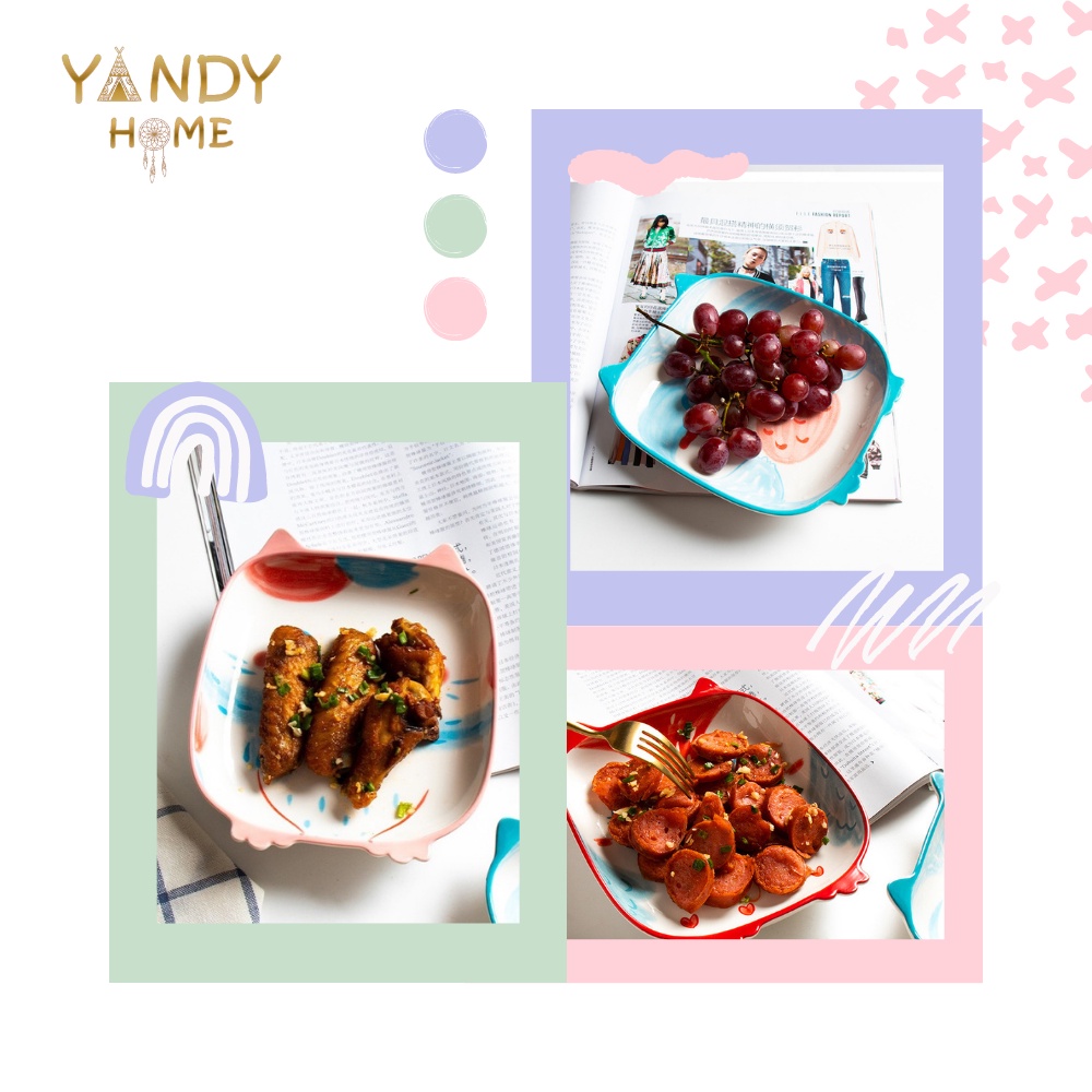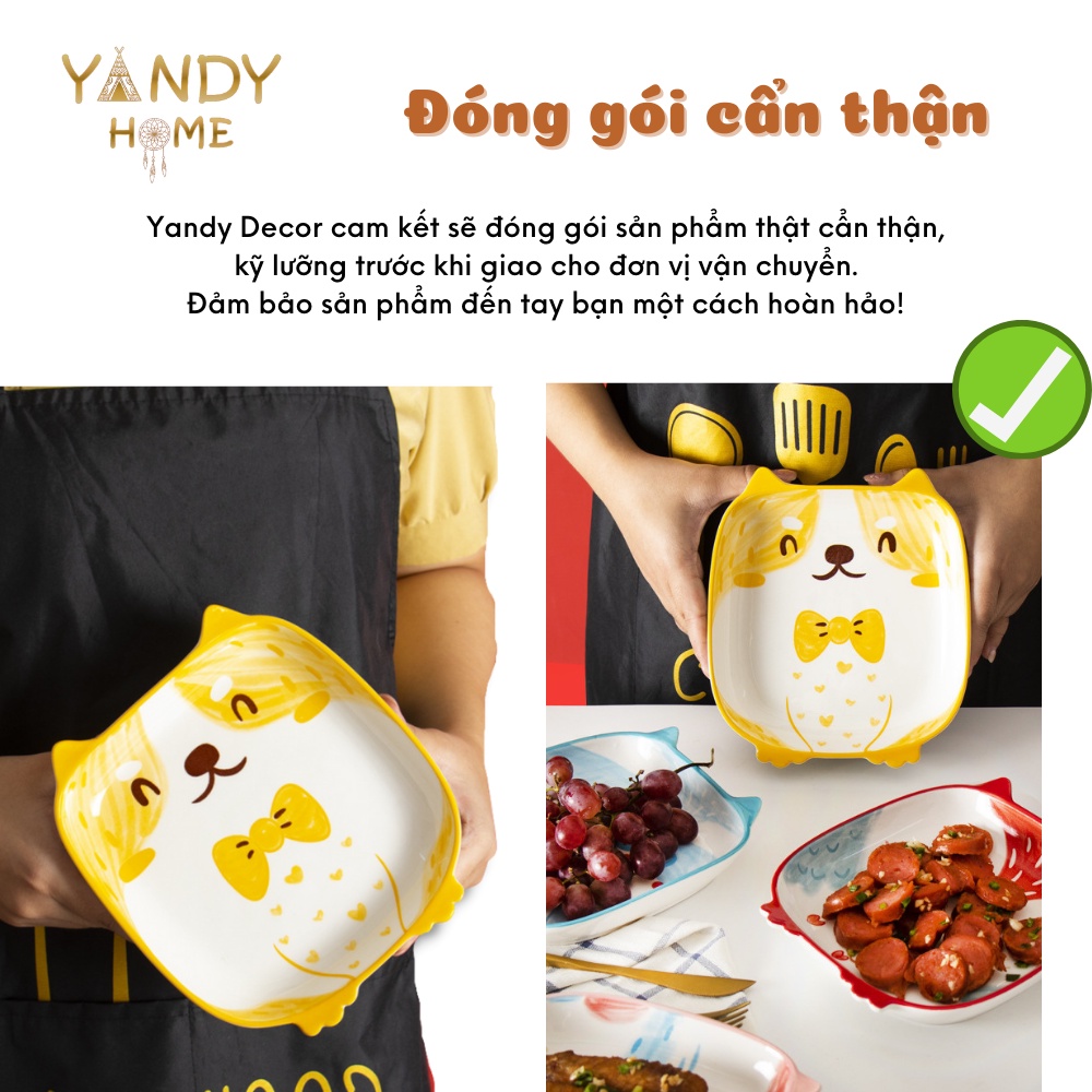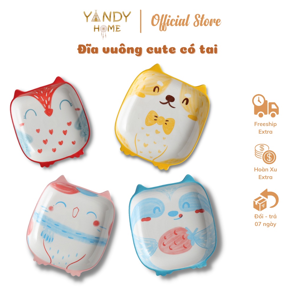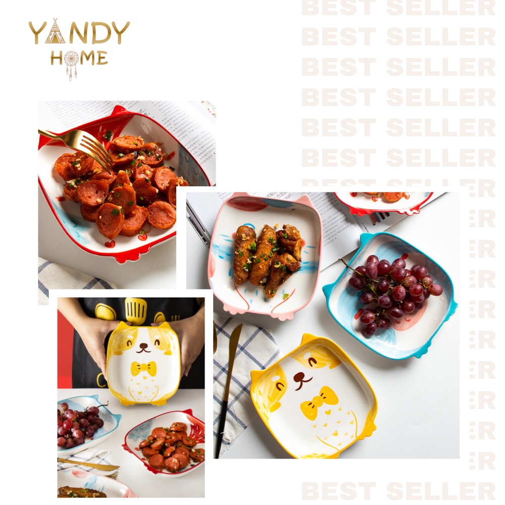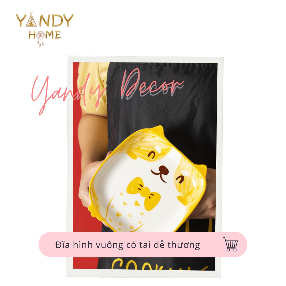 Nhà cửa & Đời sống > Bộ đồ bàn ăn > Dĩa || [Mã BMBAU50 giảm 7% đơn 150K] Đĩa sứ vuông cute YANDY HOME D06 hình cún mèo cú ngộ nghĩnh dễ thươngCòn hàng