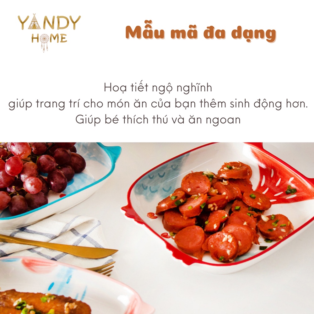 Đĩa sứ vuông cute YANDY HOME D06 hình cún mèo cú ngộ nghĩnh dễ thương