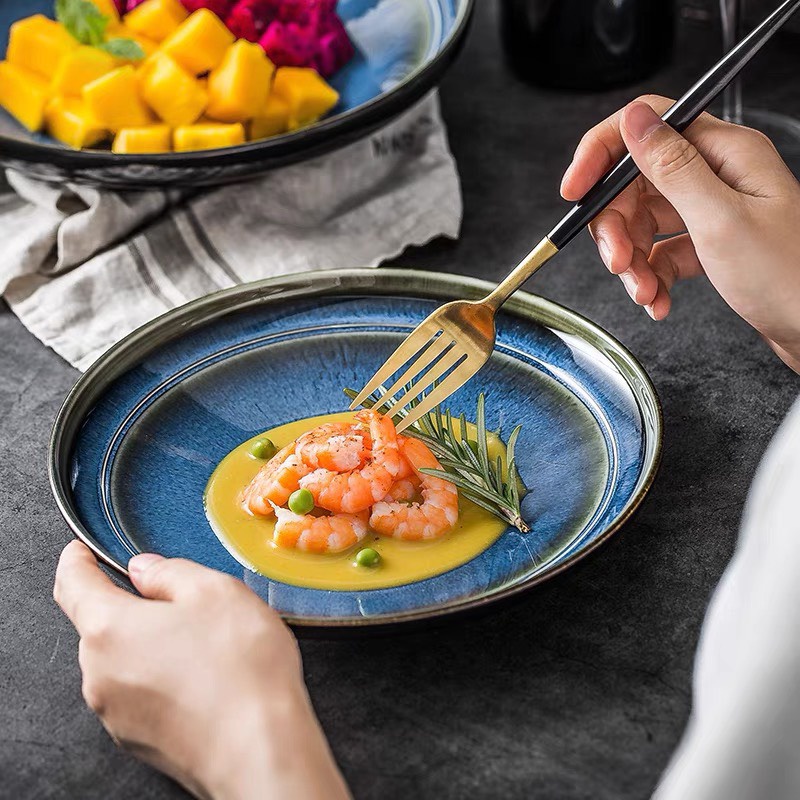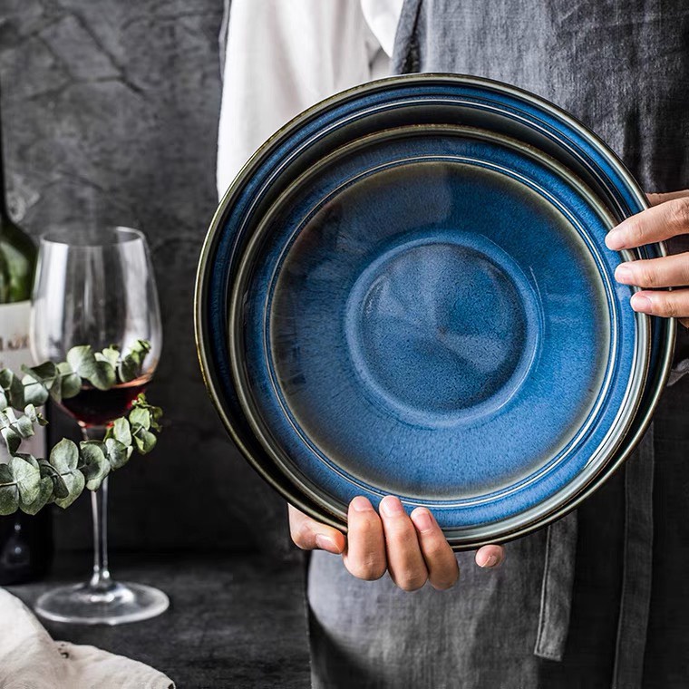 Nhà cửa & Đời sống > Bộ đồ bàn ăn > Dĩa || Đĩa sứ xanh phong cách sang trọng, nhiều size, đĩa nhà hàngCòn hàng
