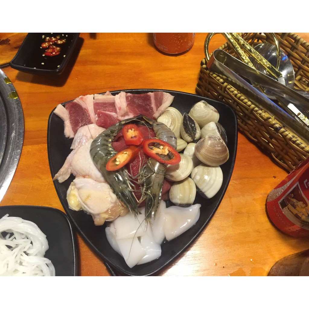 Đĩa tam giác đen nhám có vân giúp tăng khả năng cố định món ăn trên đĩa, kèm theo đó là khả năng chống xước của bề mặt do cọ xát.