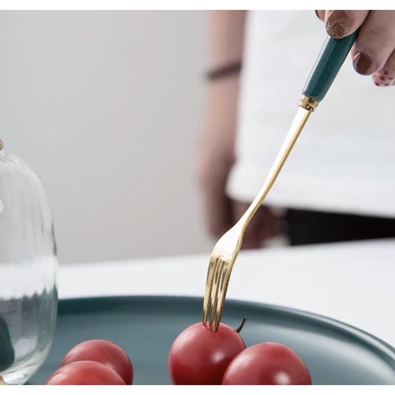 Nhà cửa & Đời sống > Bộ đồ bàn ăn > Dĩa || Bộ dĩa, thìa vàng cán sứ xanh cổ vịt sang trọngCòn hàng