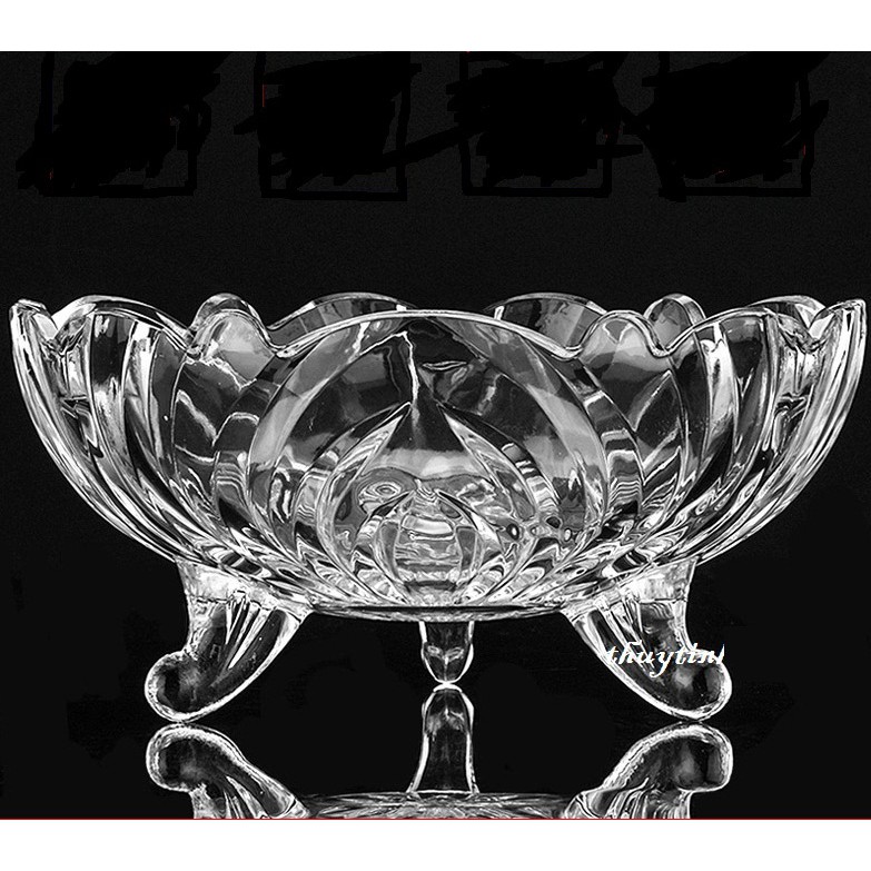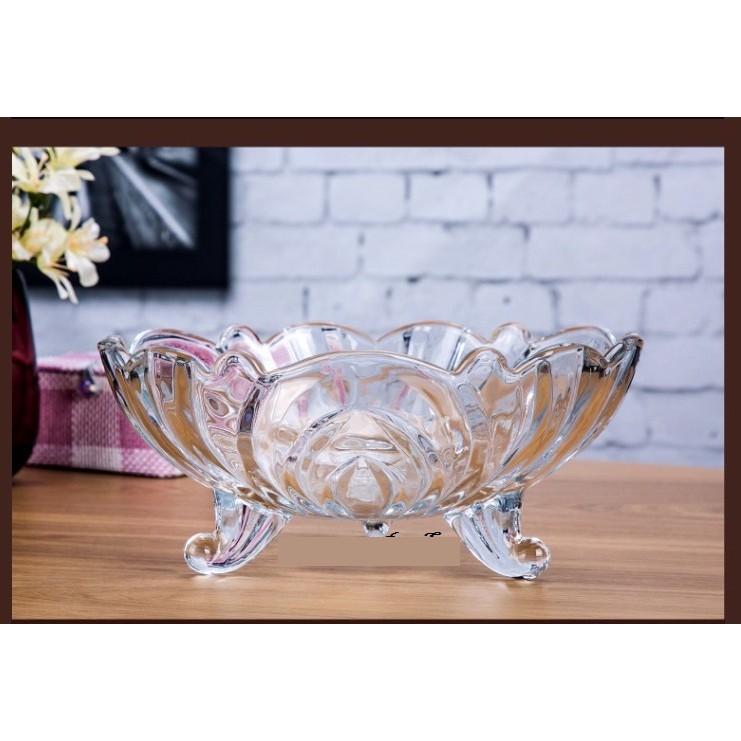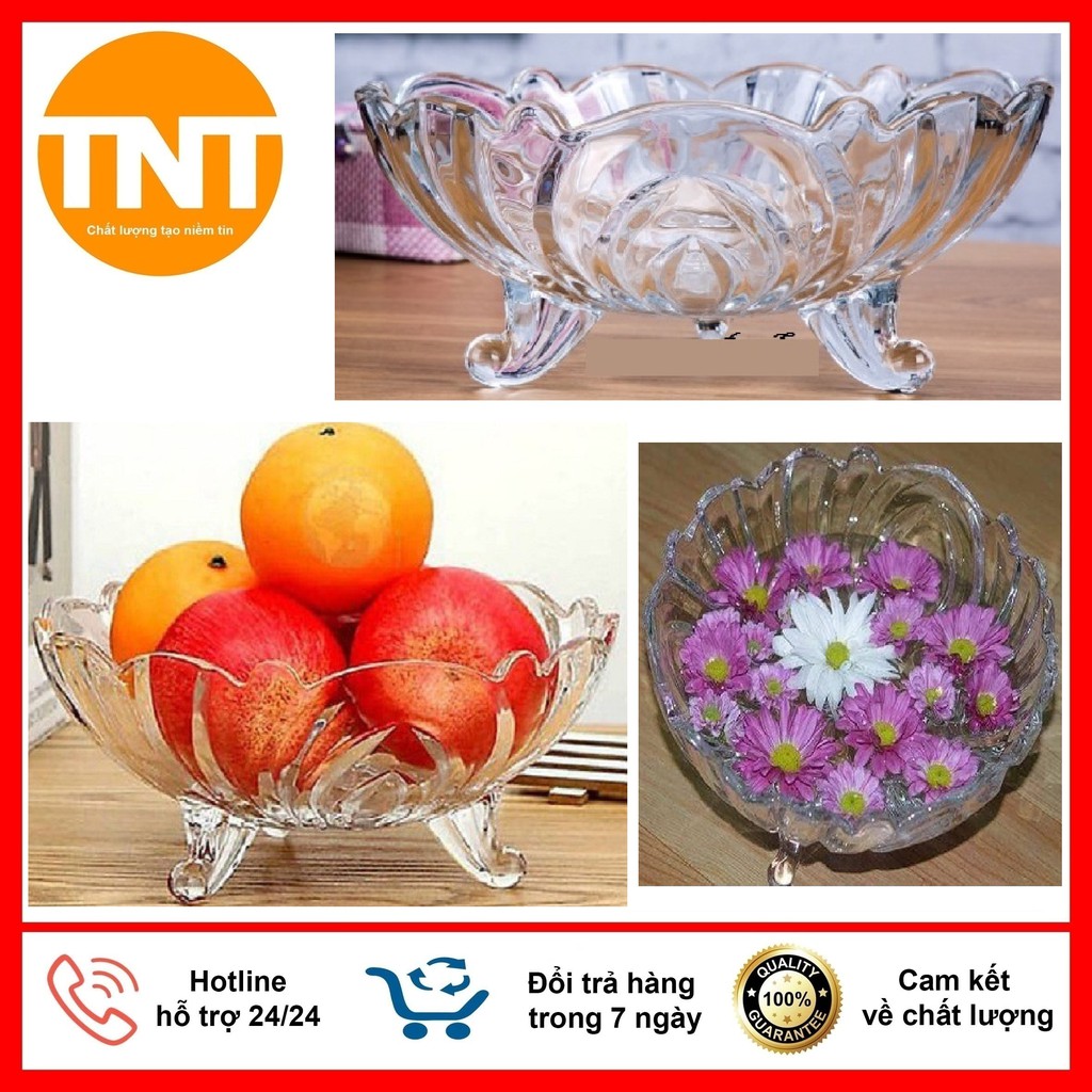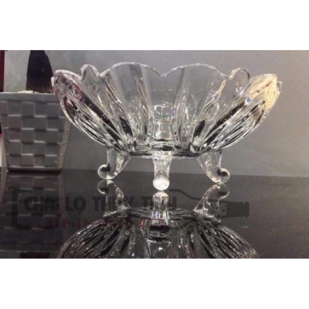 Đĩa thủy tinh cao cấp đựng hoa quả, đựng mứt ,thả hoa,đưng bánh kẹo 3 chân