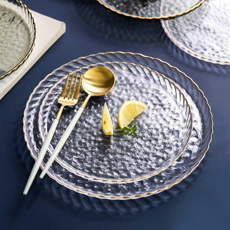 Nhà cửa & Đời sống > Bộ đồ bàn ăn > Dĩa || [Mã SKAMLSC28 giảm 10% tối đa 50K đơn 100K] Đĩa Thuỷ Tinh Đẹp Xoắn [NHẬT BẢN][VIỀN VÀNG] chịu nhiệt cao cấp, vàng 18kCòn hàng