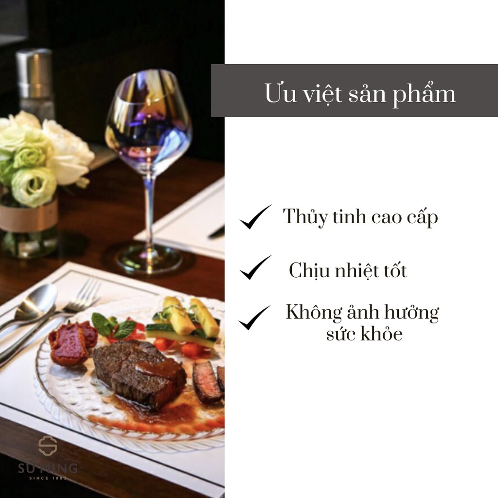 - Chất liệu thuỷ tinh chịu nhiệt, viền vàng 18k tinh tế.
