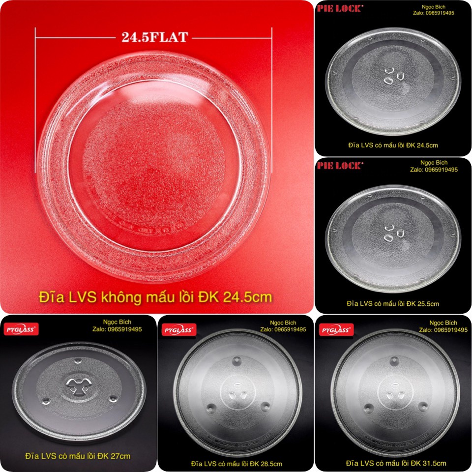 Giới thiệu Đĩa thủy tinh đựng đồ ăn lò vi sóng các cỡ 24.5 - 25.5 - 27 - 28.5 - 31.5 cm lvs