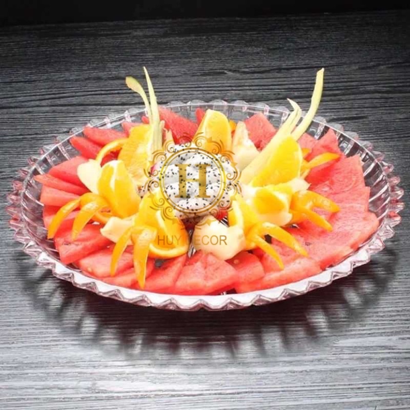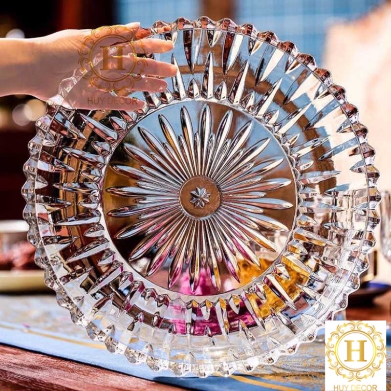 Đĩa thuỷ tinh đựng hoa quả Huydecor size 27cm, đĩa đựng bánh kẹo hoa quả gia tiên