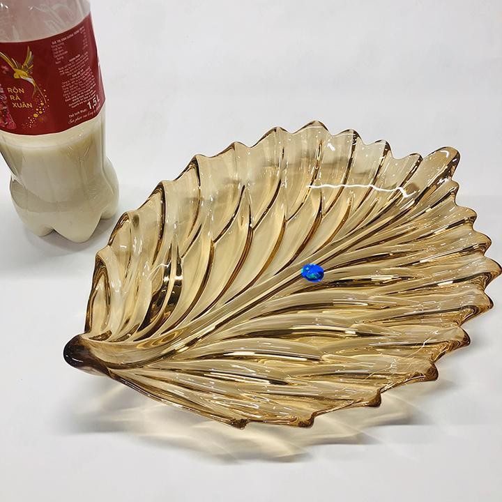 Đĩa thủy tinh mầu vàng hình chiếc lá (CL.140563)Phù hợp để hoa quả