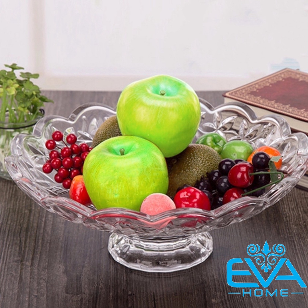 Đĩa Thuỷ Tinh Pha Lê Chân Cao Đựng Hoa Quả / Thố Mứt Tết / Khay Mâm Bông Thuỷ Tinh Cao Cấp 329 M3559