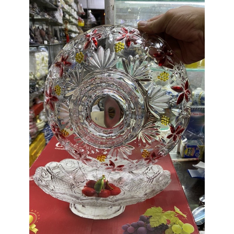 Giới thiệu đĩa thủy tinh pha Lê có chân đựng trái cây bánh trái mứt
