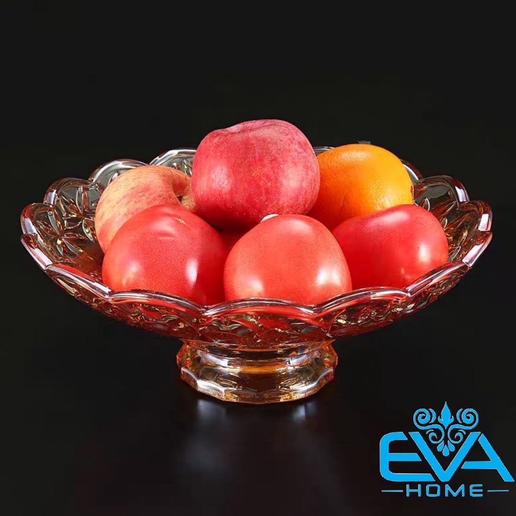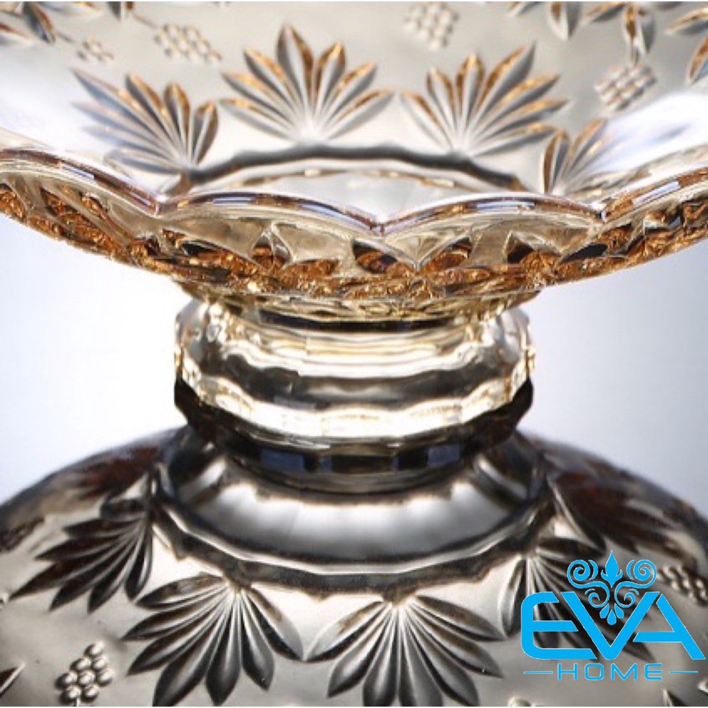 Đĩa Thuỷ Tinh Pha Lê Vàng Chân Cao Đựng Hoa Quả / Thố Mứt Tết / Khay Mâm Bông Thuỷ Tinh Ánh Vàng Cao Cấp 329 M3560Mã hàng hoá : 003560
