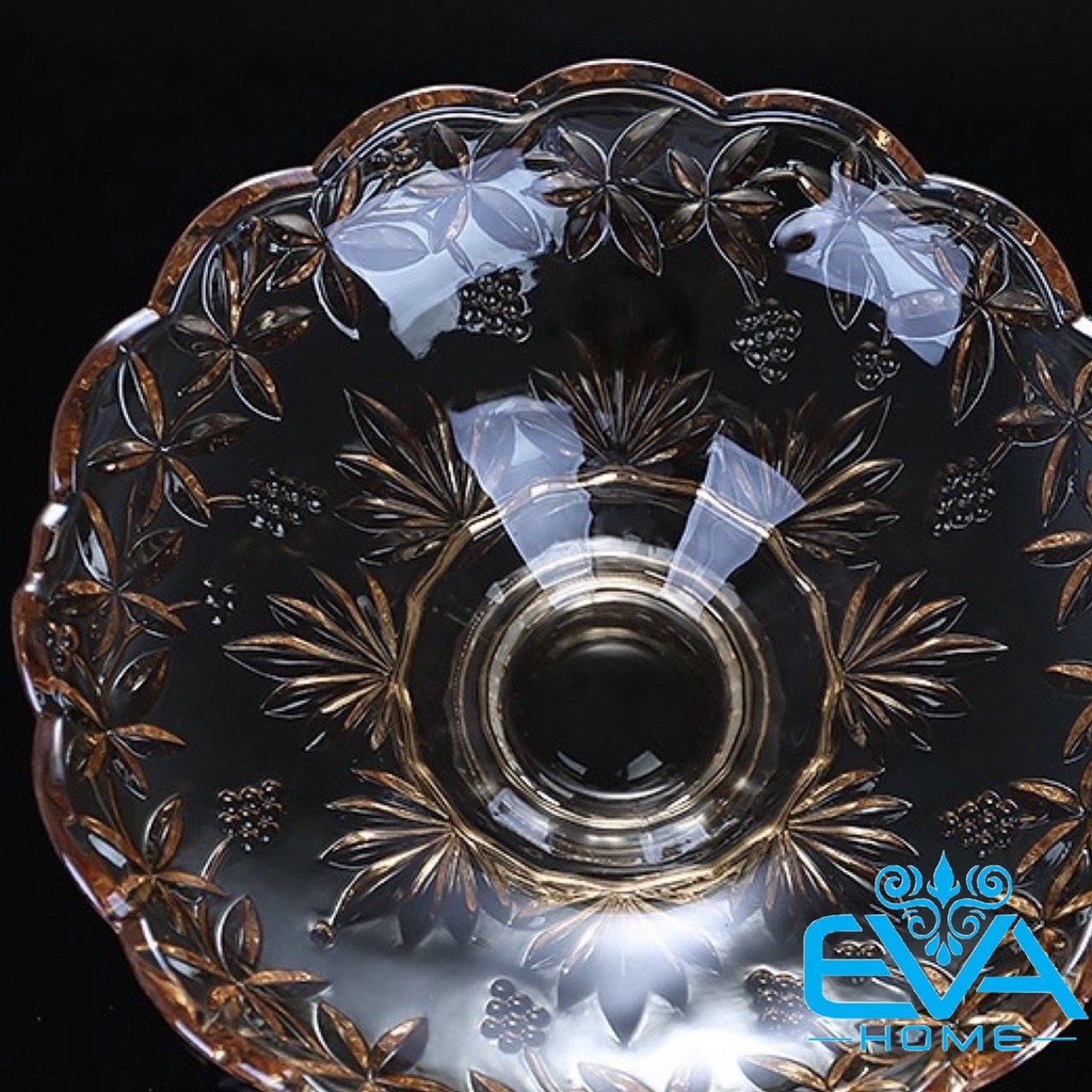 Đĩa Thuỷ Tinh Pha Lê Vàng Chân Cao Đựng Hoa Quả / Thố Mứt Tết / Khay Mâm Bông Thuỷ Tinh Ánh Vàng Cao Cấp 329 M3560