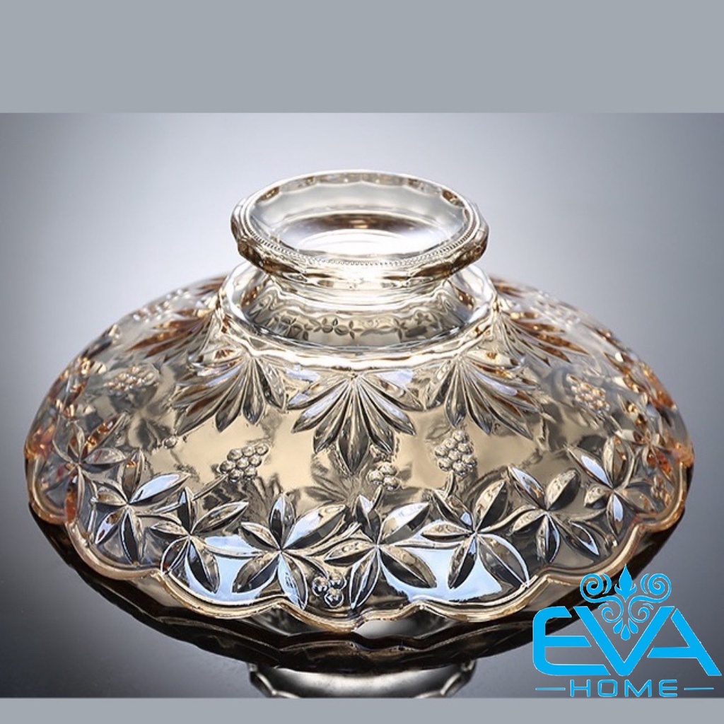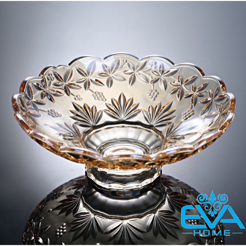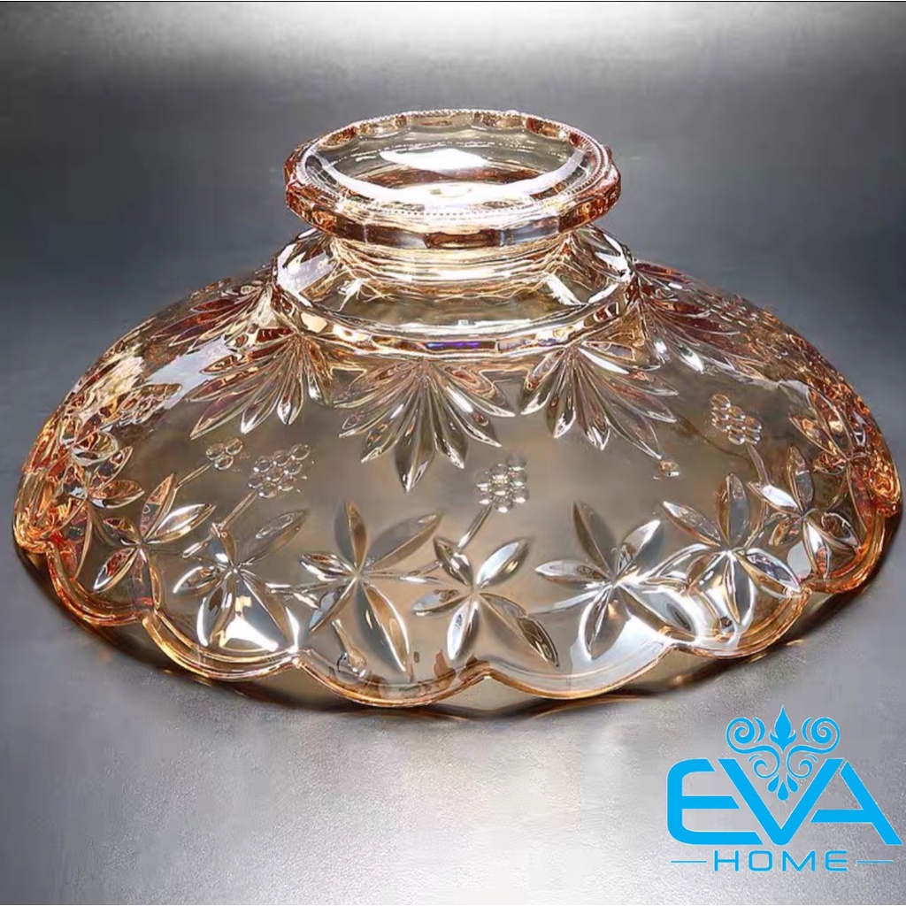 Giới thiệu Đĩa Thuỷ Tinh Pha Lê Vàng Chân Cao Đựng Hoa Quả / Thố Mứt Tết / Khay Mâm Bông Thuỷ Tinh Ánh Vàng Cao Cấp 329 M3560