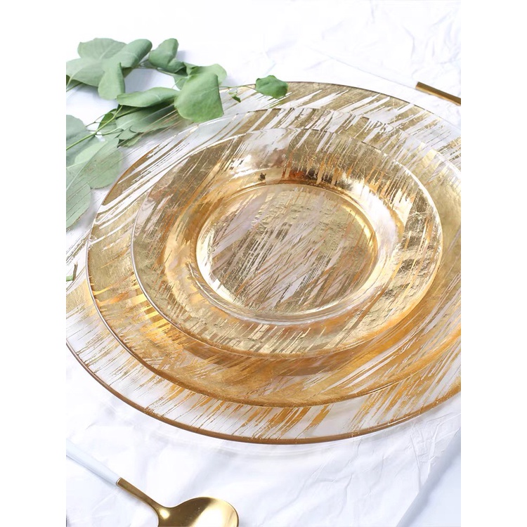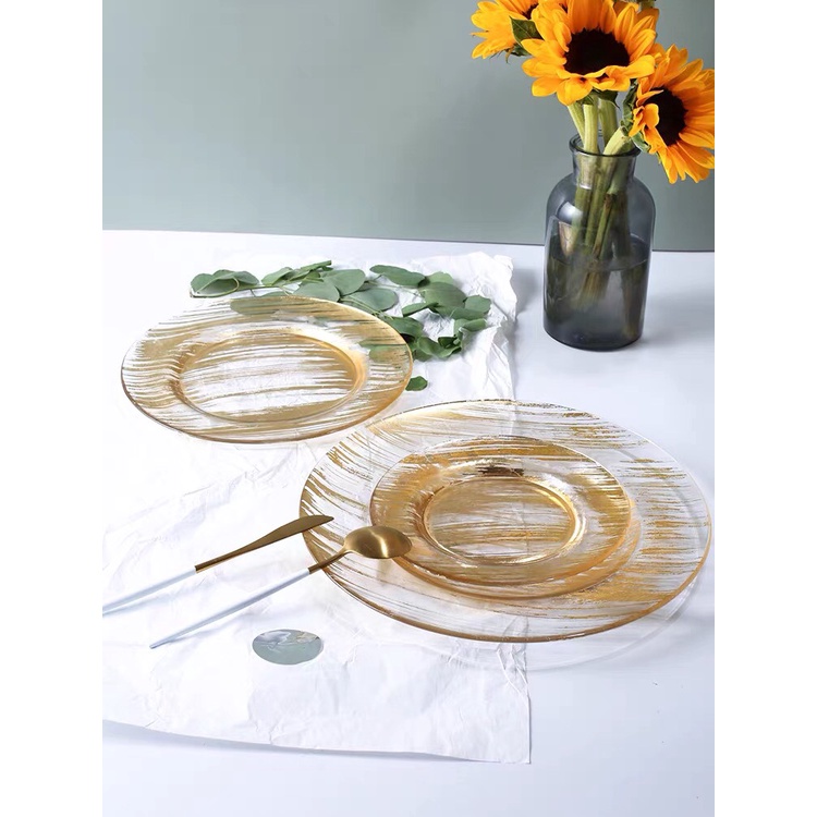 Nhà cửa & Đời sống > Bộ đồ bàn ăn > Dĩa || Đĩa Thuỷ Tinh phong cách Châu Âu,sang trọng độc đáo, chịu lực, đĩa trắng vàng cao cấp nhập khẩuCòn hàng